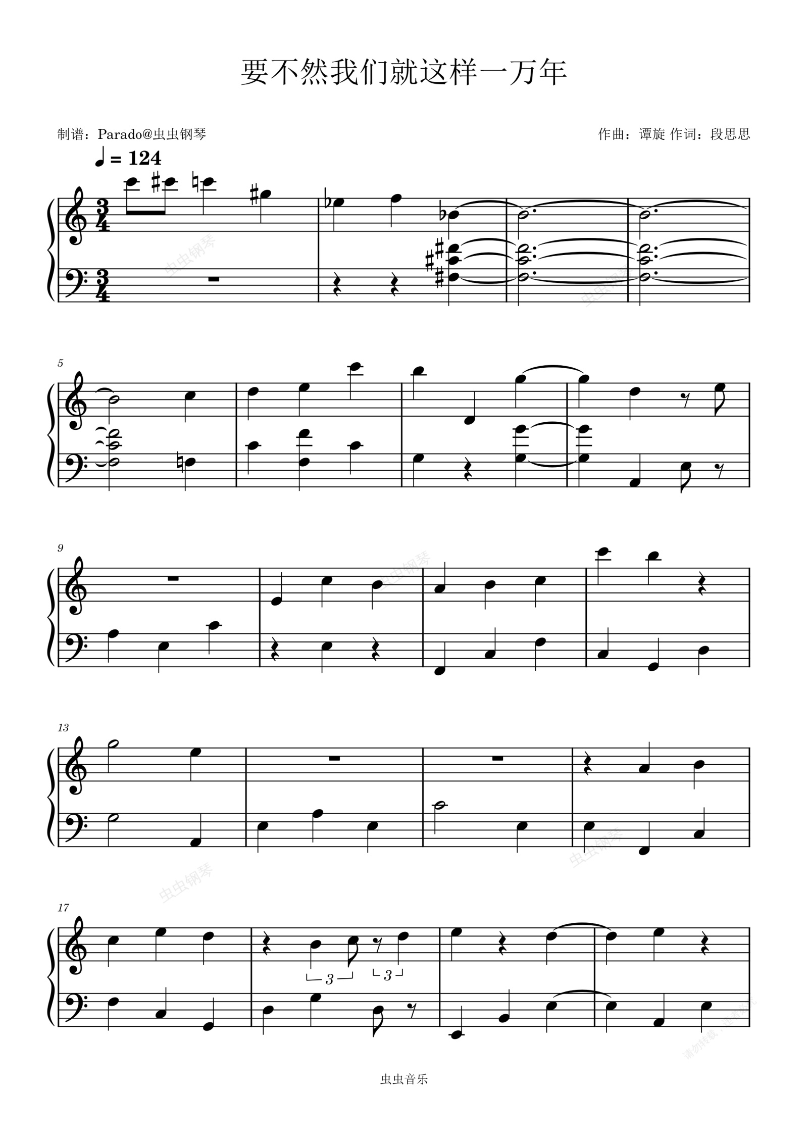 钢琴谱:要不然我们就这样一万年《长月烬明》插曲C调版