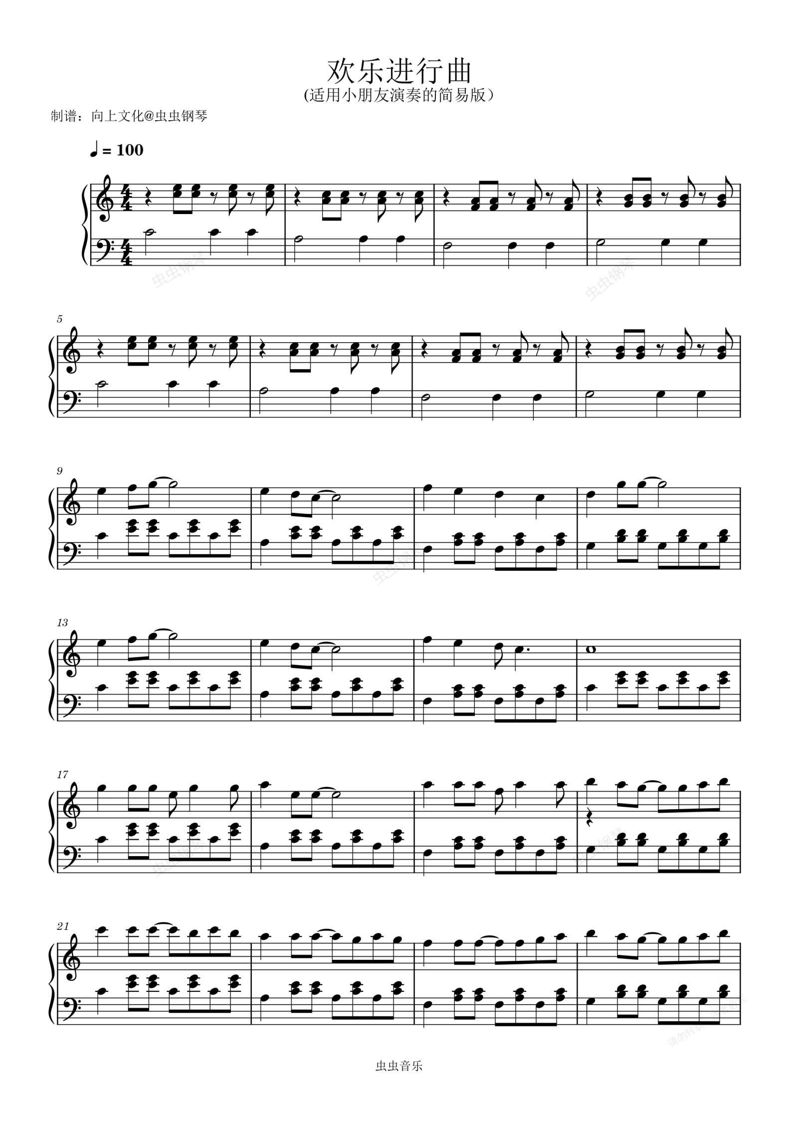 钢琴谱:欢乐进行曲(适合小朋友演奏的简易版)