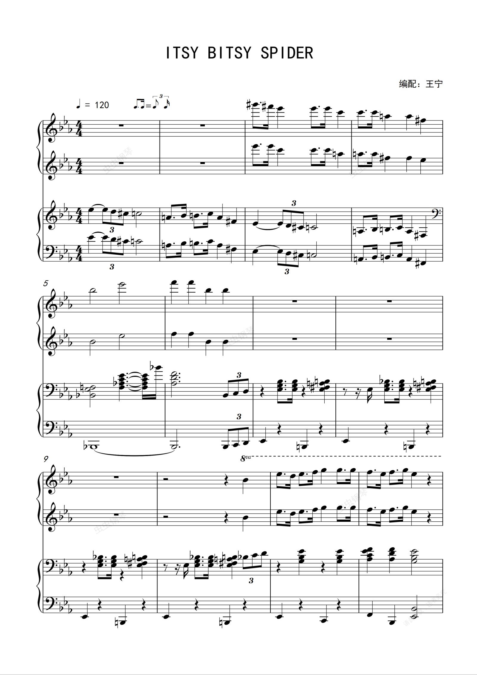钢琴谱:Itsy Bitsy Spider四手联弹