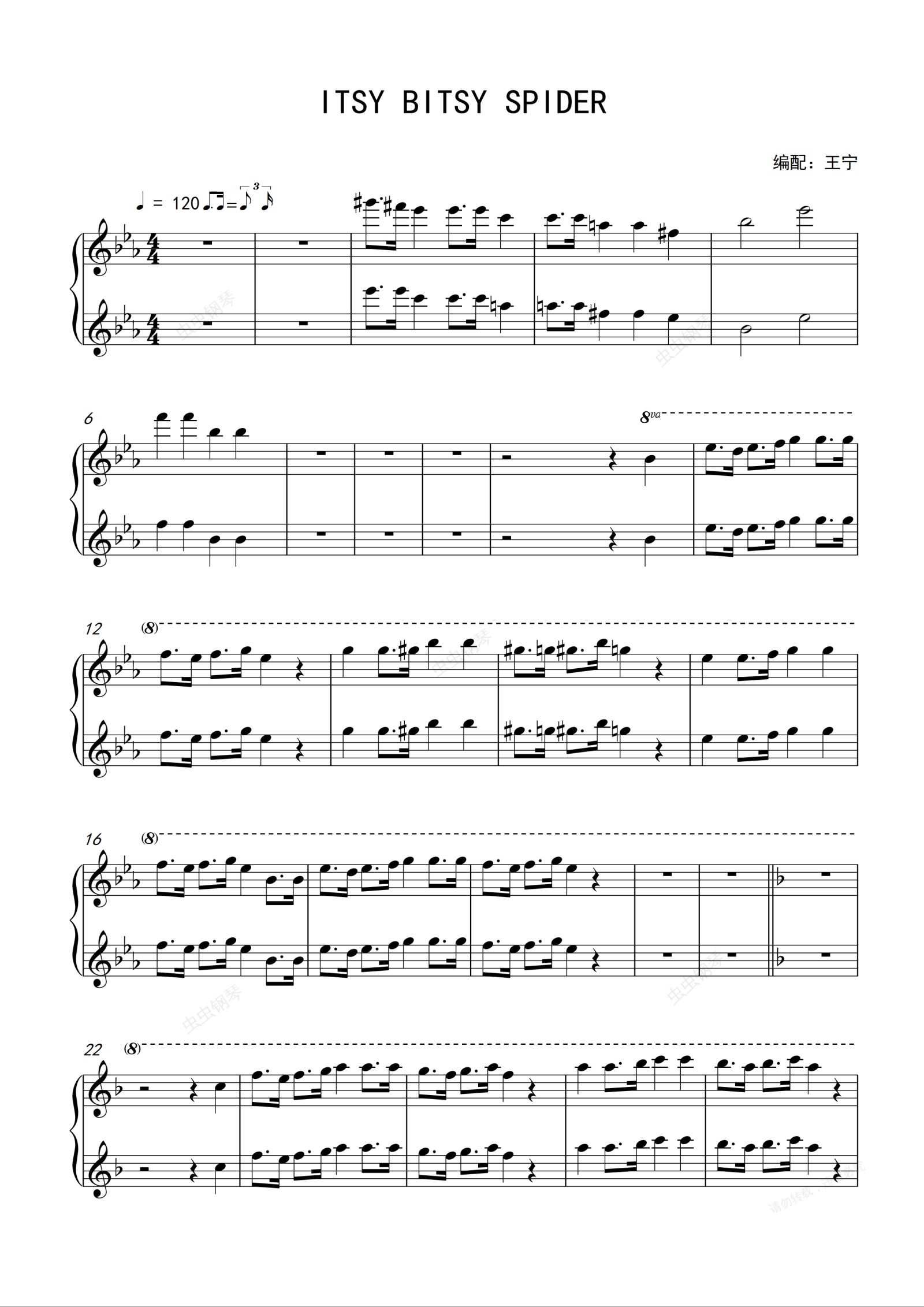 钢琴谱:Itsy Bitsy Spider四手联弹(主)