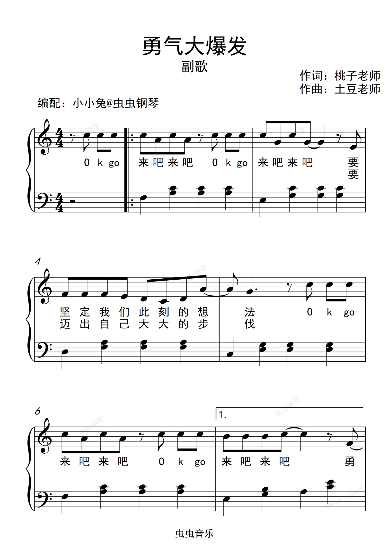钢琴谱:勇气大爆发 副歌段 拜厄难度