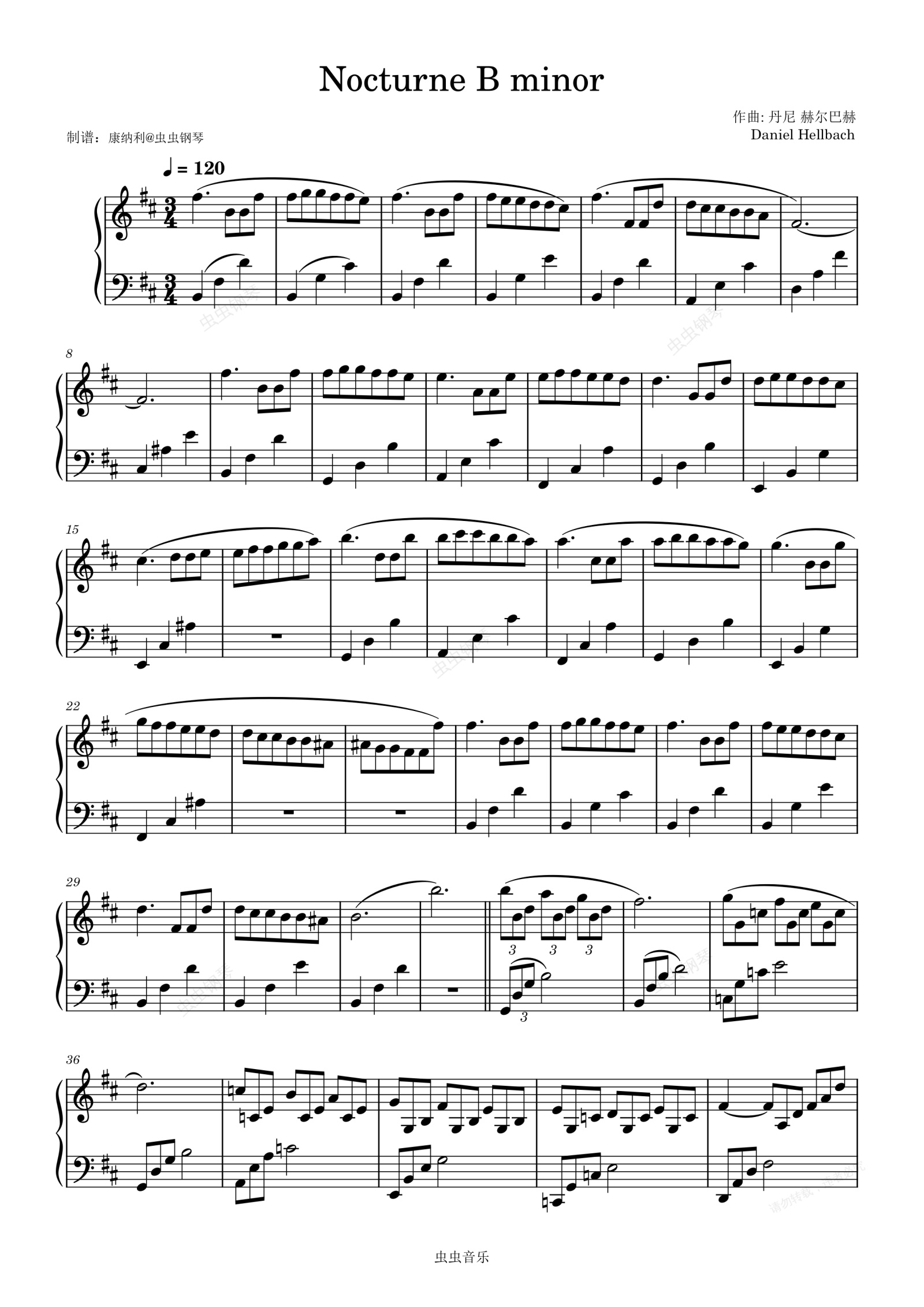 钢琴谱:b小调夜曲-丹尼尔 赫尔巴赫