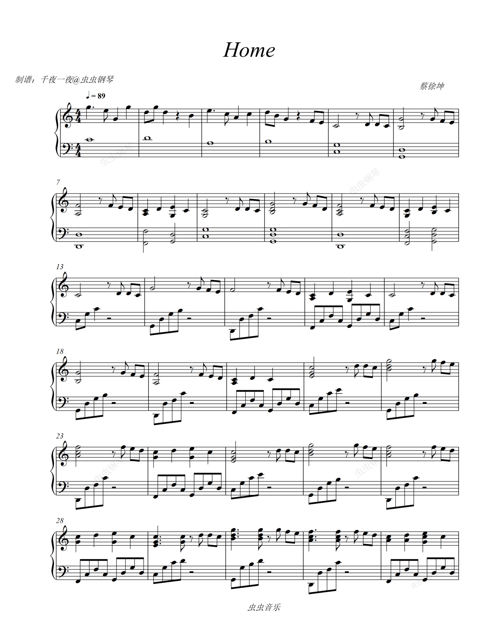 钢琴谱:Home-蔡徐坤致敬抗疫英雄家一直都在