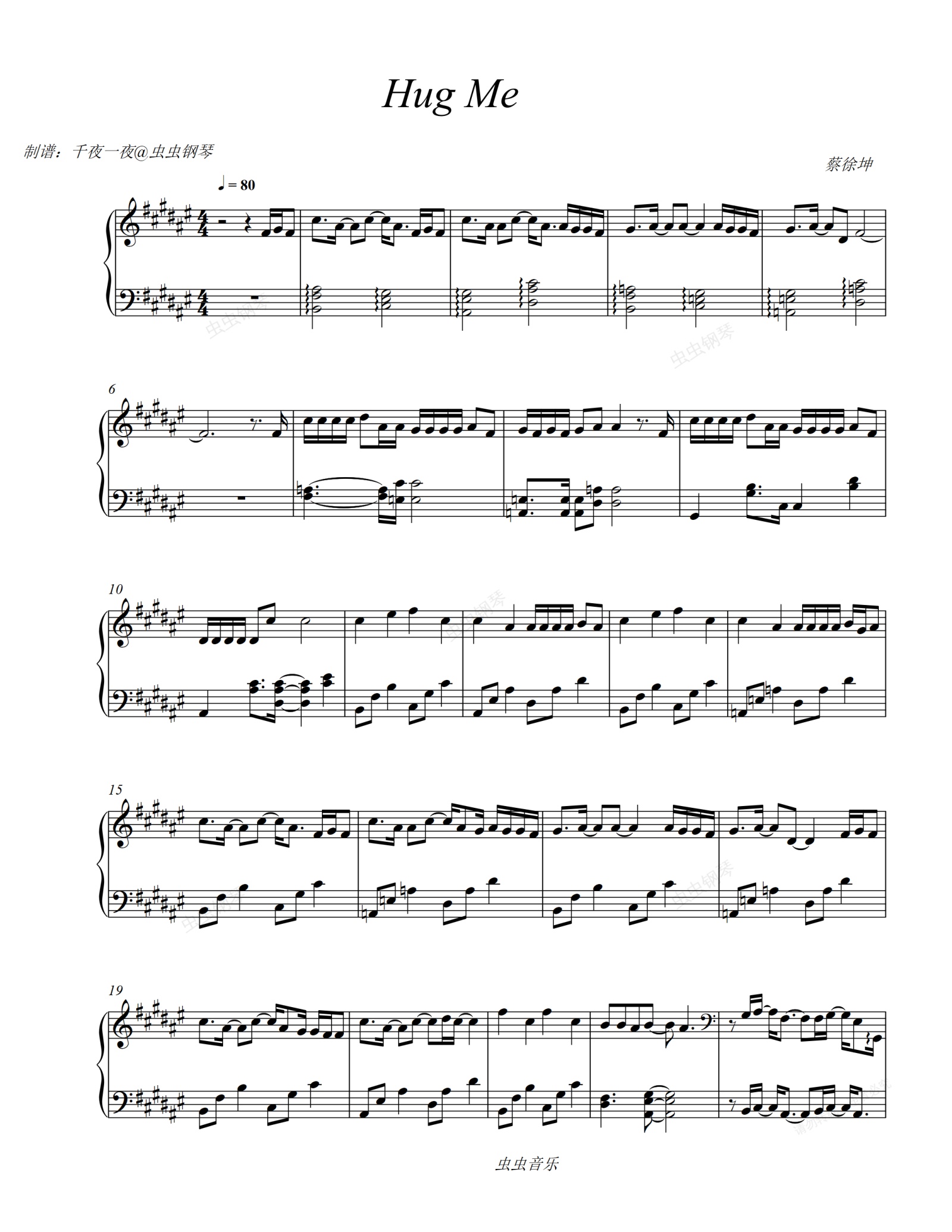 钢琴谱:《Hug Me》坤坤新歌,华语乐坛顶流!哥哥太厉害啦~