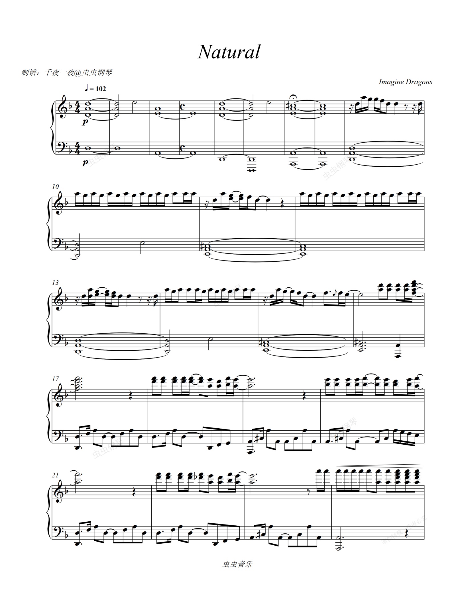 钢琴谱:梦龙《Natural》燃爆全场!!! Imagine Dragons