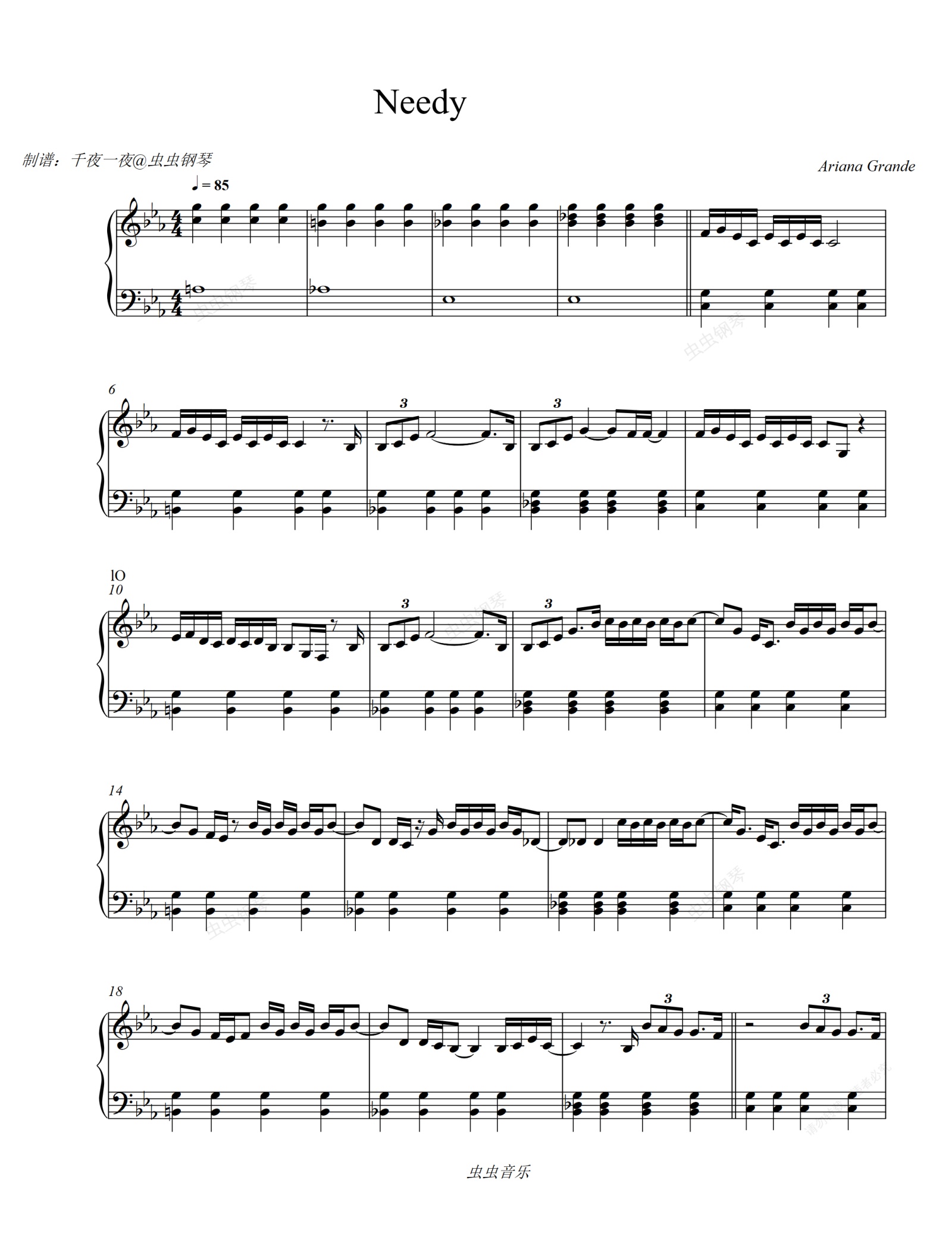 钢琴谱:A妹Ariana Grande最新表演新专《needy》