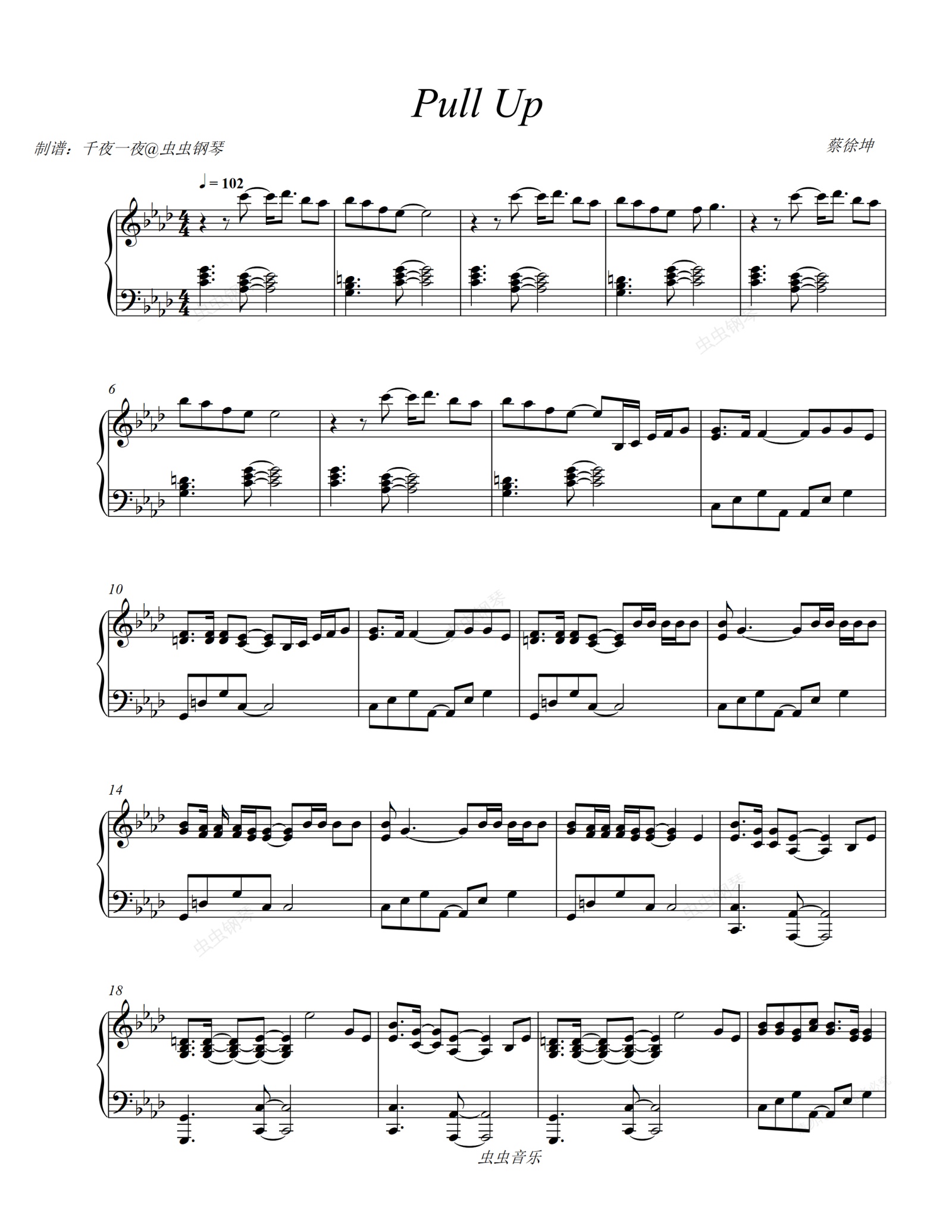 钢琴谱:听一遍就想收藏的钢琴曲 蔡徐坤 pull up