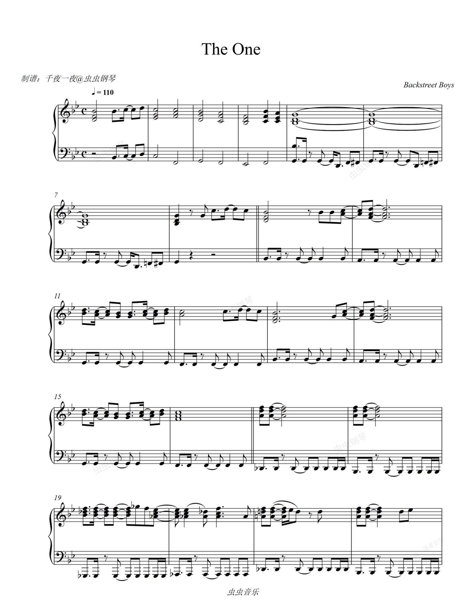钢琴谱:【青春回忆·经典】Backstreet Boys - The One 钢琴版