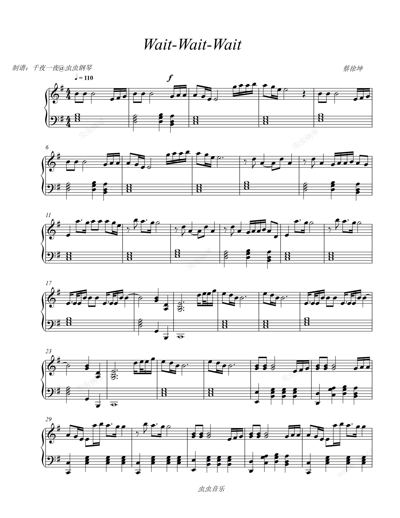 钢琴谱:Wait-Wait-Wait-蔡徐坤