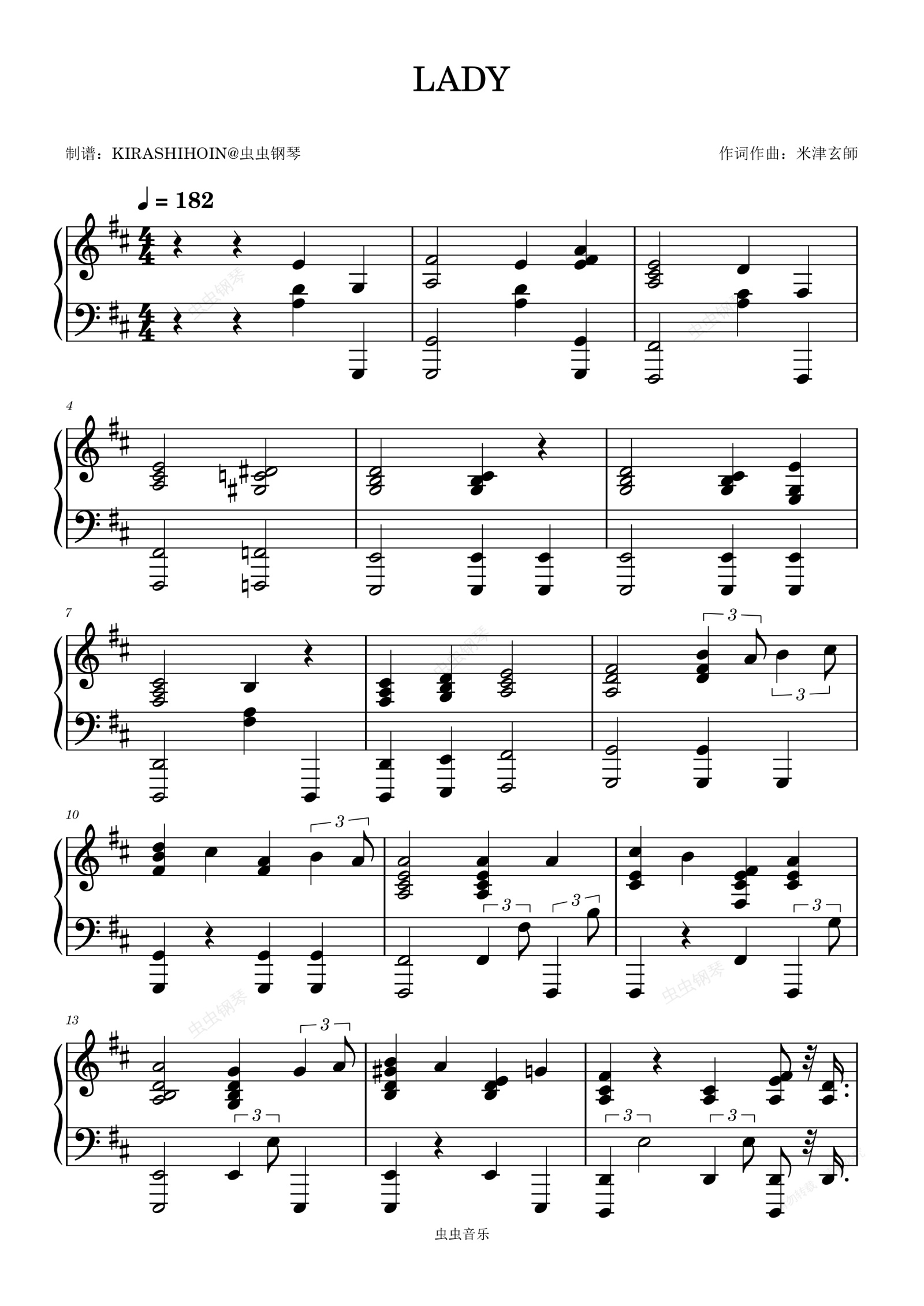 钢琴谱:LADY - 米津玄师