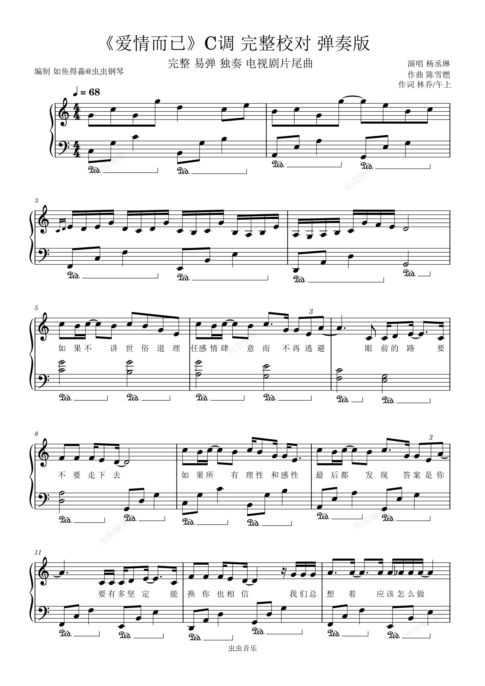 钢琴谱:《爱情而已》C调 完整 校对 弹奏版