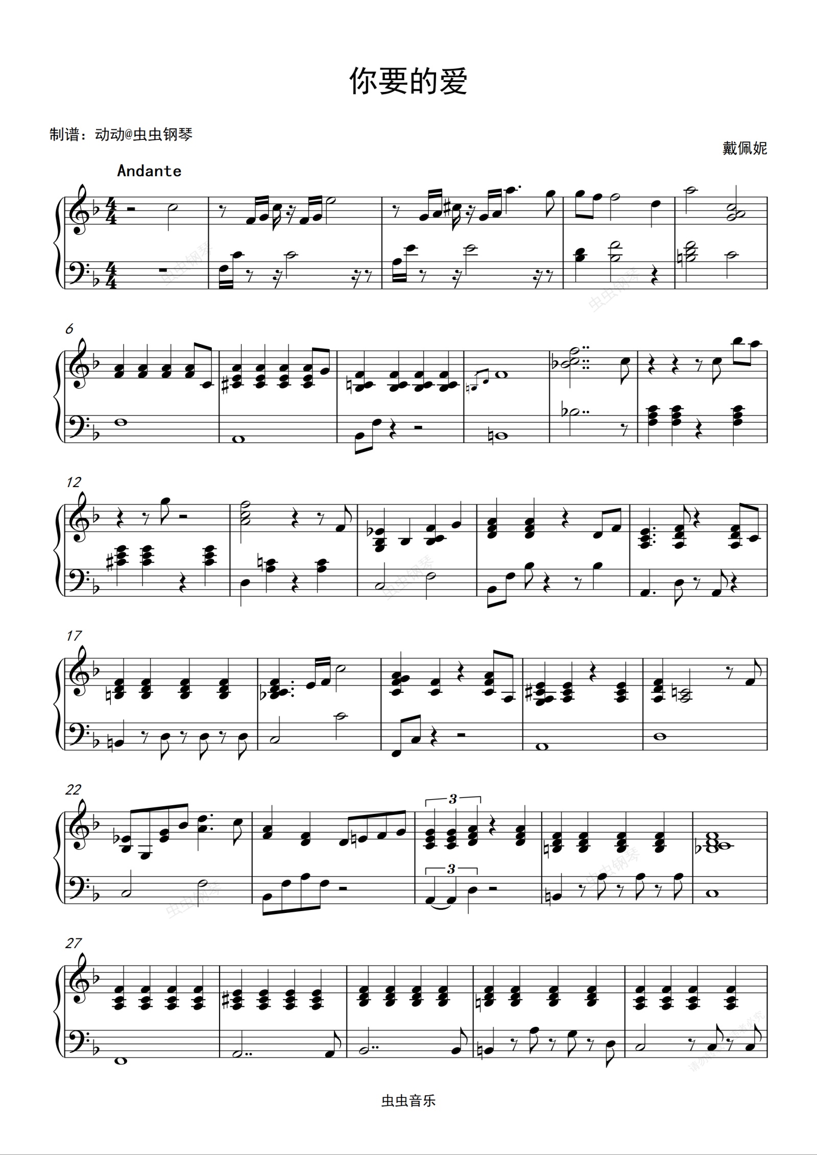 钢琴谱:你要的爱(深夜版)-2018流星花园