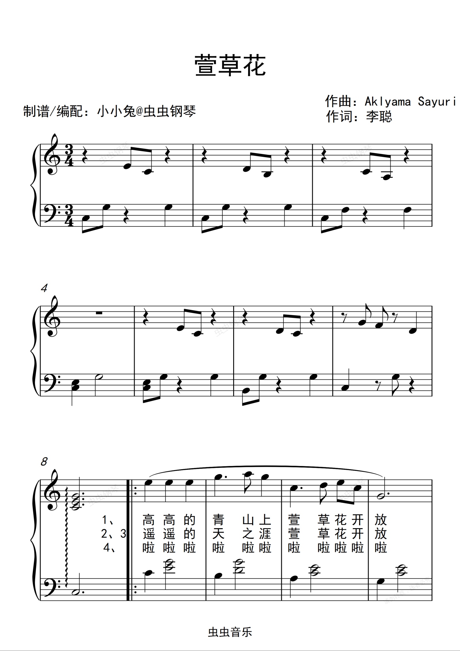 钢琴谱:萱草花 拜厄难度