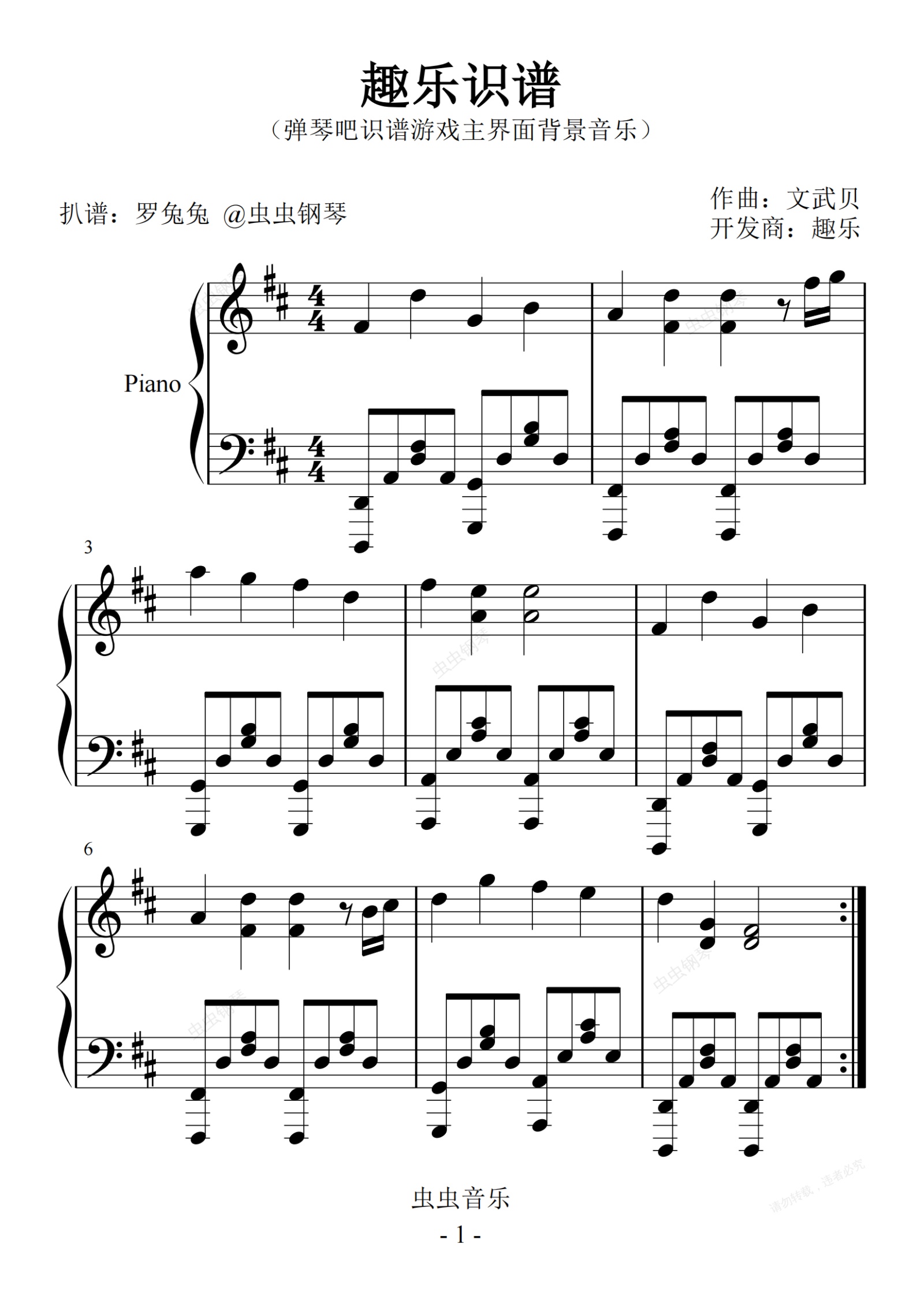 钢琴谱:趣乐识谱(弹琴吧识谱游戏主界面背景音乐)
