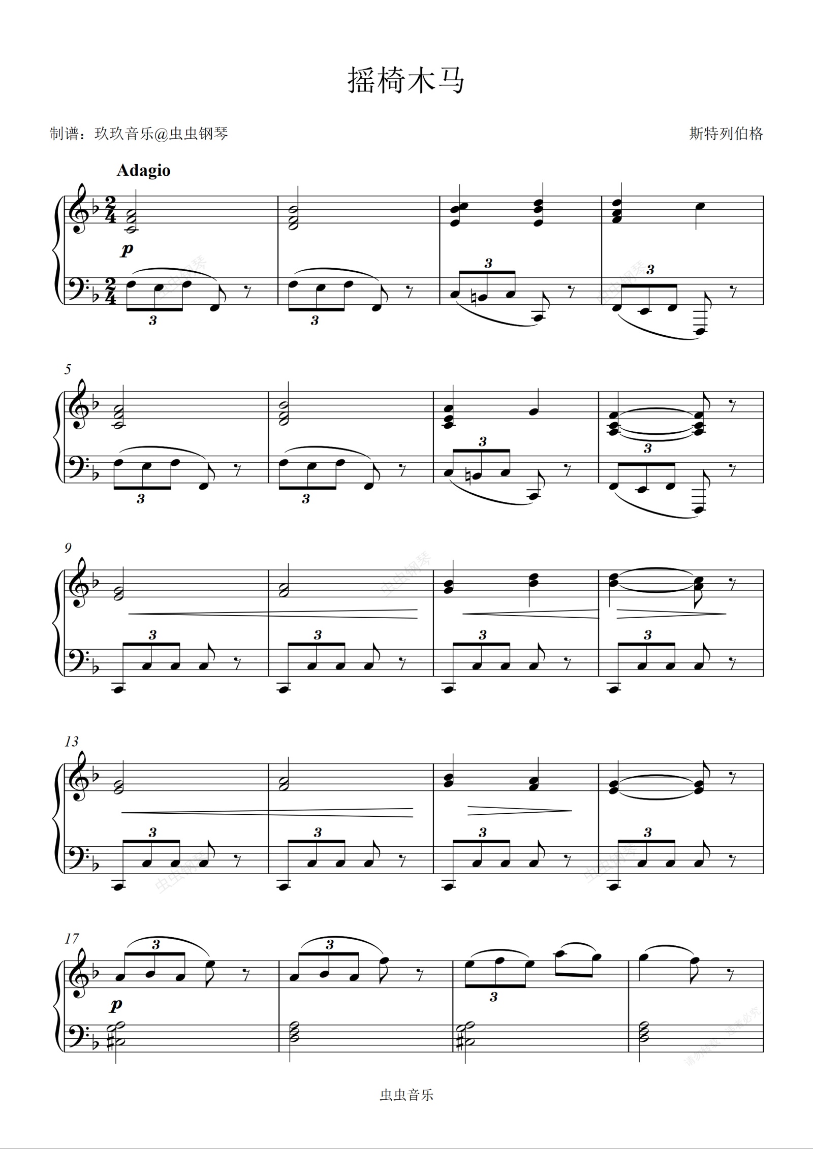 钢琴谱:摇椅木马—斯特列伯格