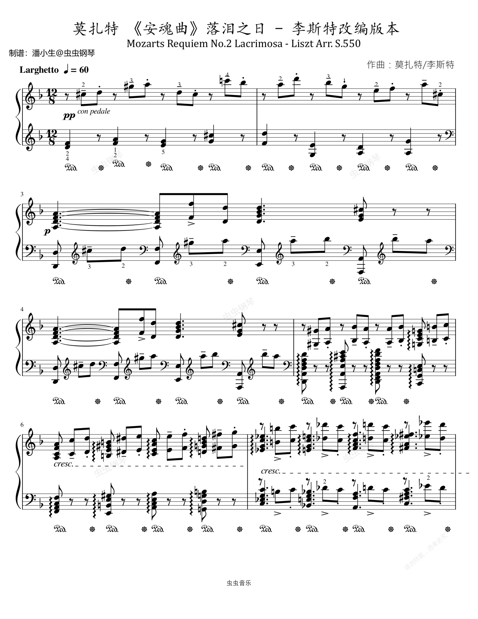 钢琴谱:莫扎特 《安魂曲》落泪之日 - 李斯特改编版本 - Mozarts Requiem No.2 Lacrimosa - Liszt Arr. S.550