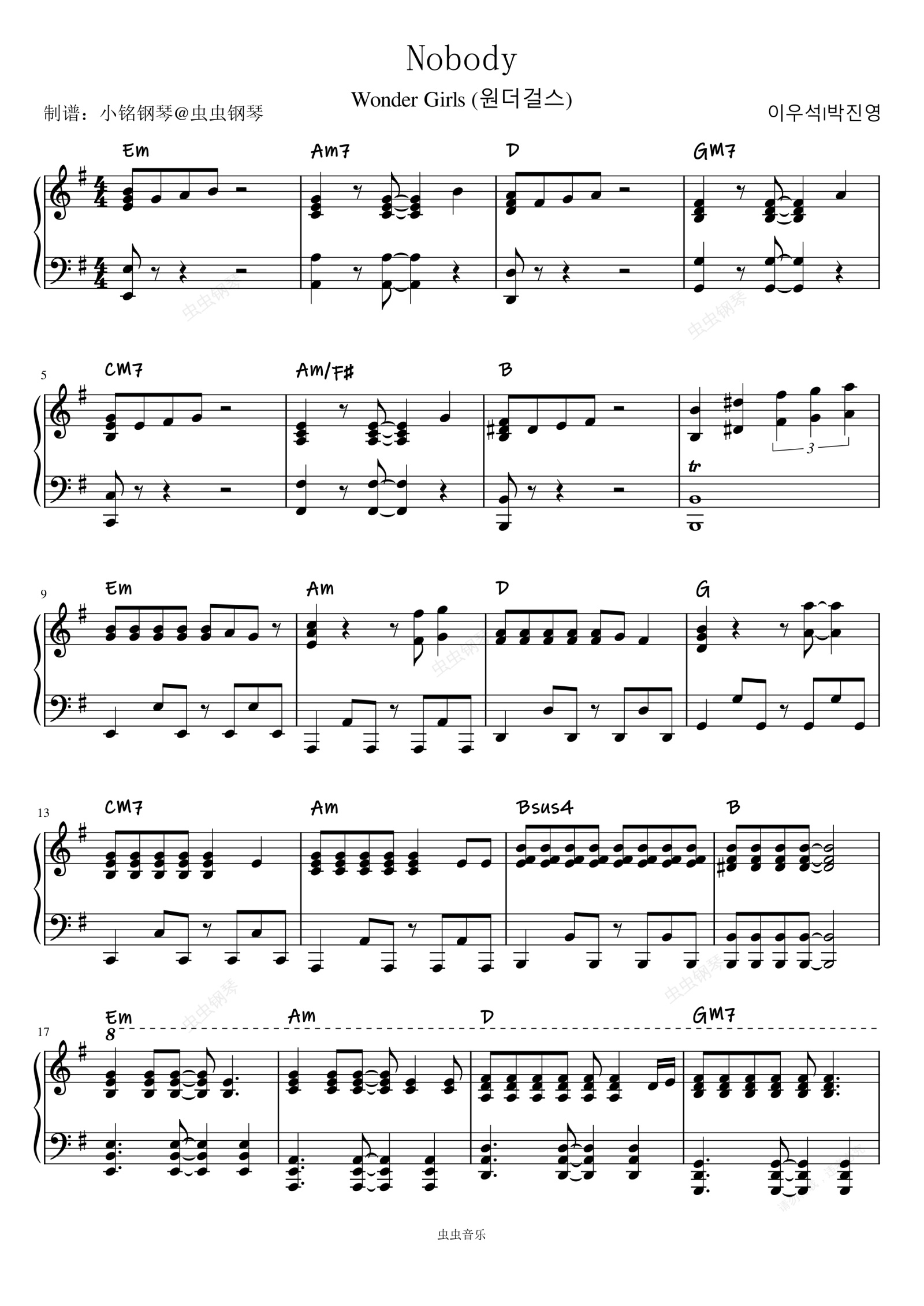 钢琴谱:Nobody (korean Ver.) - Wonder Girls (원더걸스)