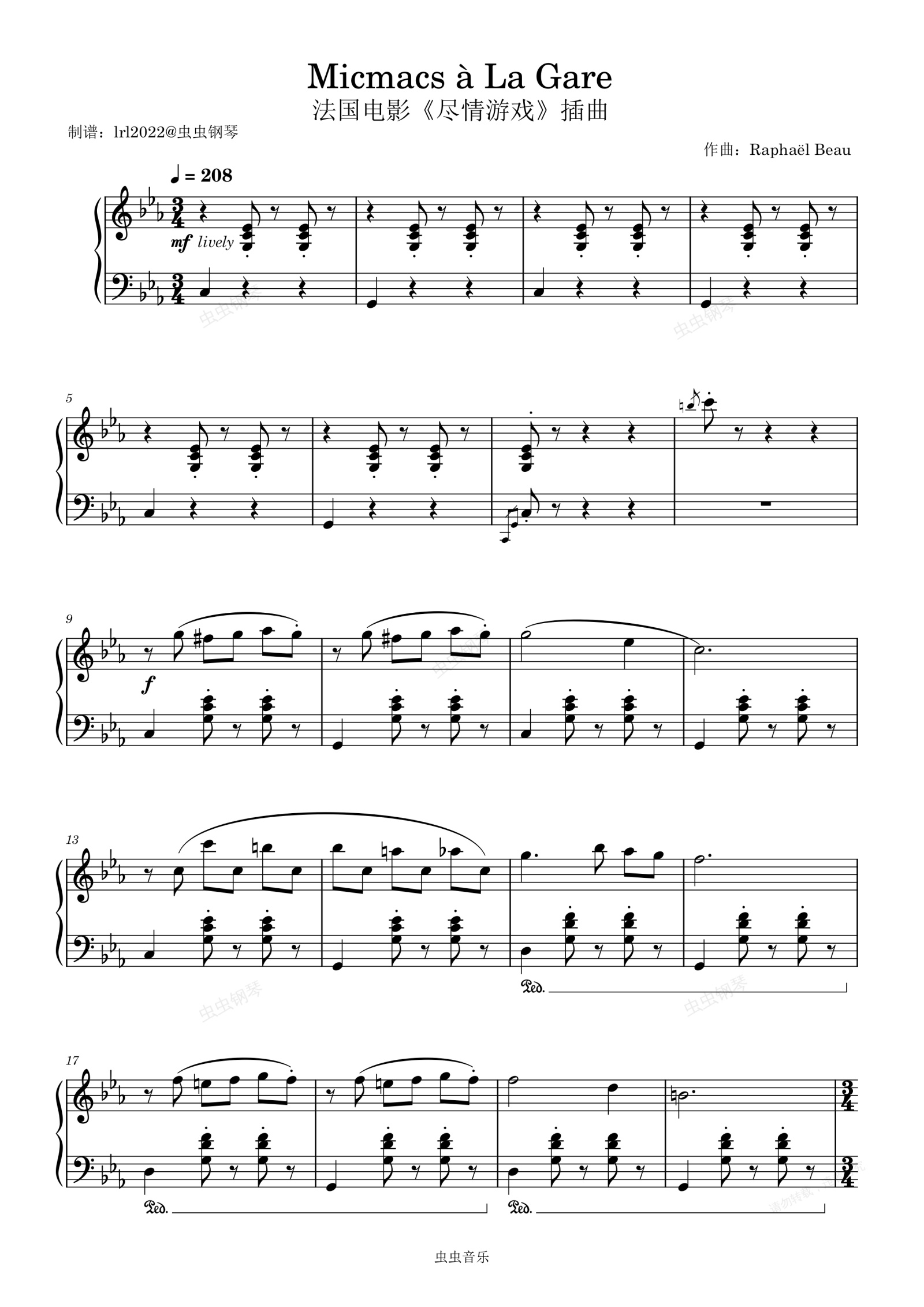 钢琴谱:Micmacs A La Gare - 法国电影《尽情游戏》插曲 - Micmacs à la Gare