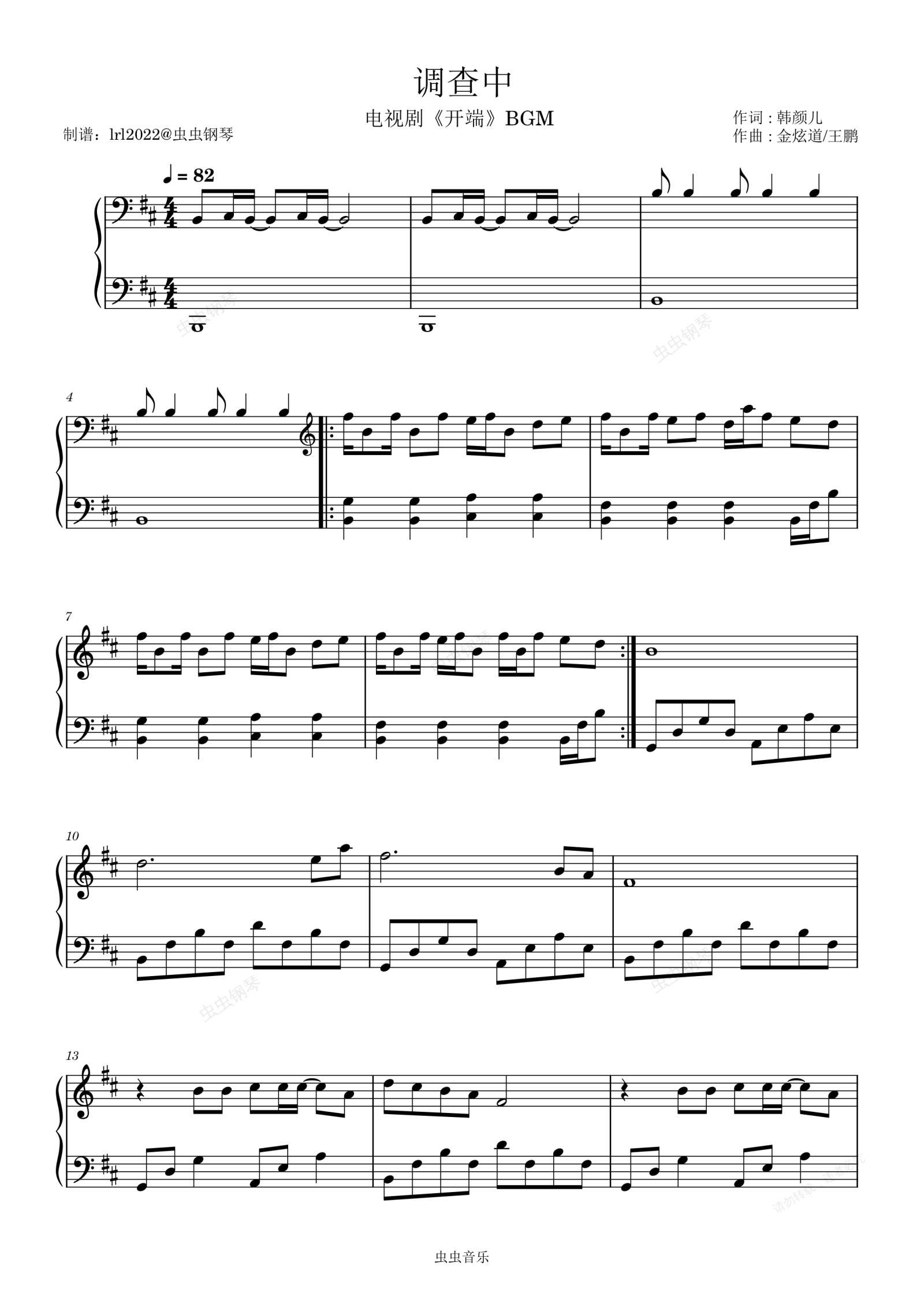 钢琴谱:调查中 - 电视剧《开端》BGM