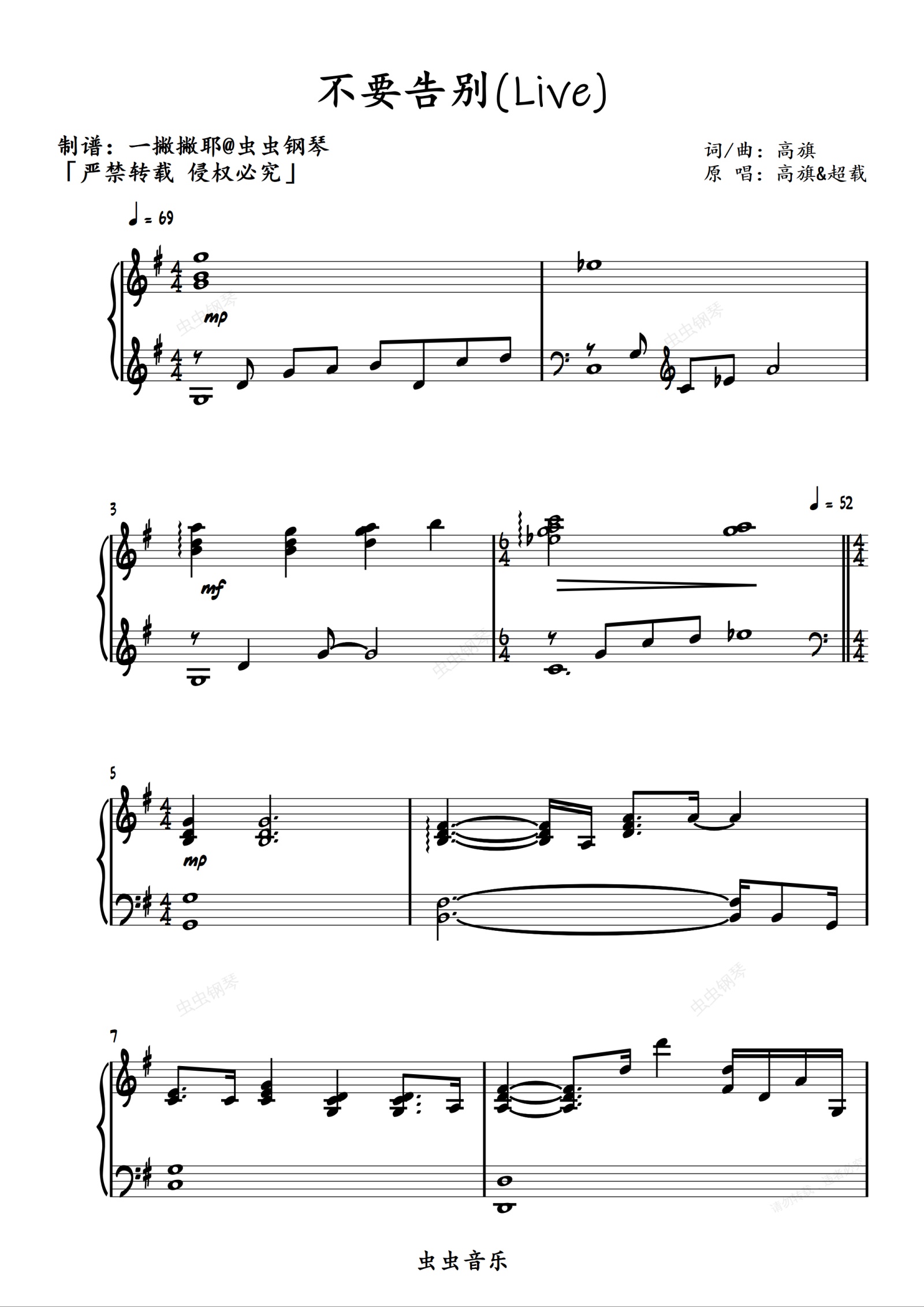 钢琴谱:不要告别【弹唱伴奏谱】高旗&超载「一撇撇耶」