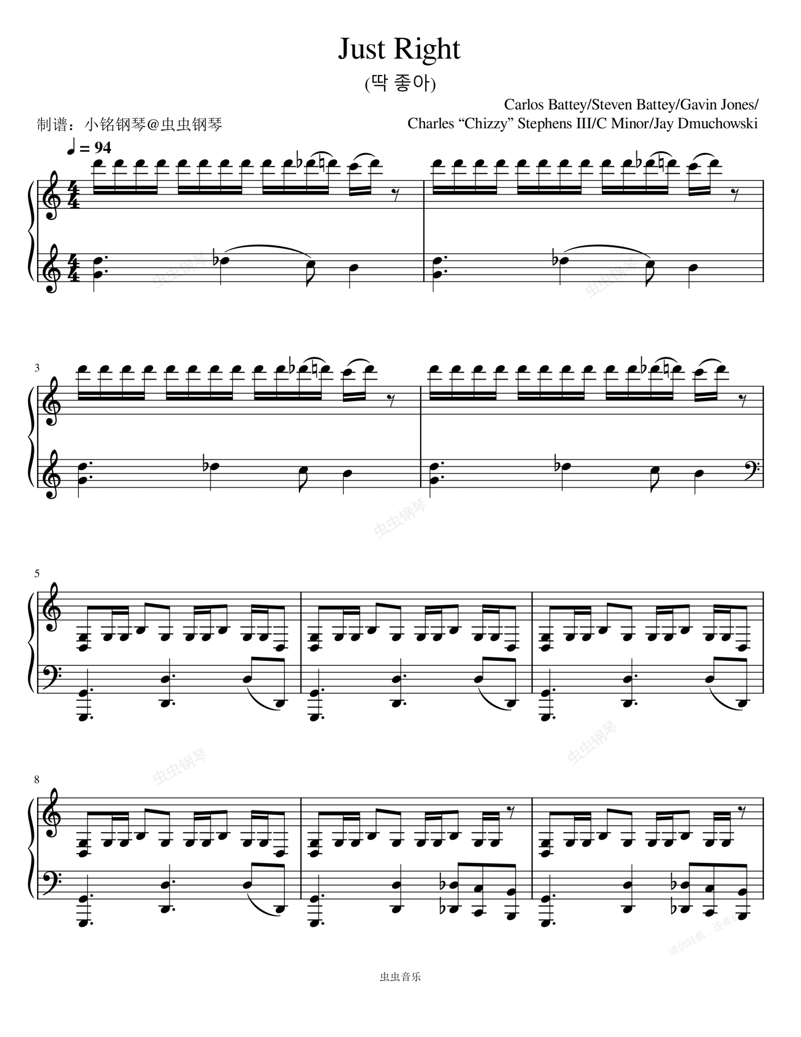 钢琴谱:딱 좋아 (Just right) (正好) (Korean ver.) - GOT7 (갓세븐)