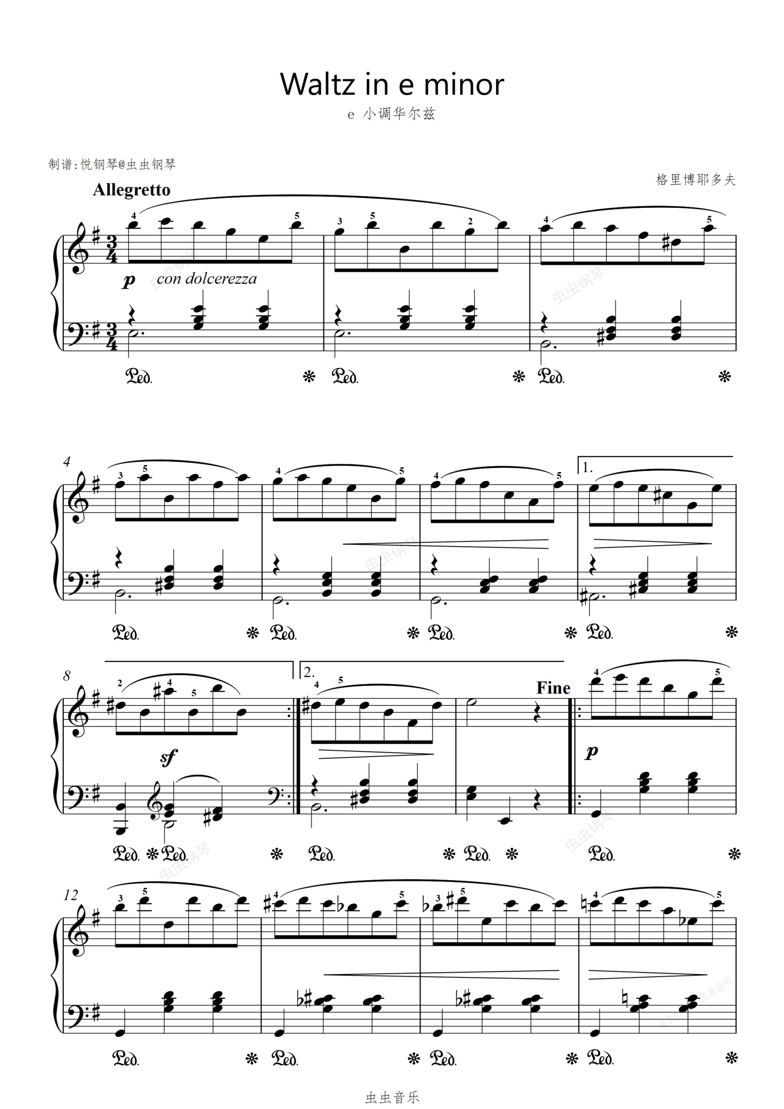 钢琴谱:e 小调华尔兹【唯美-超好听】
