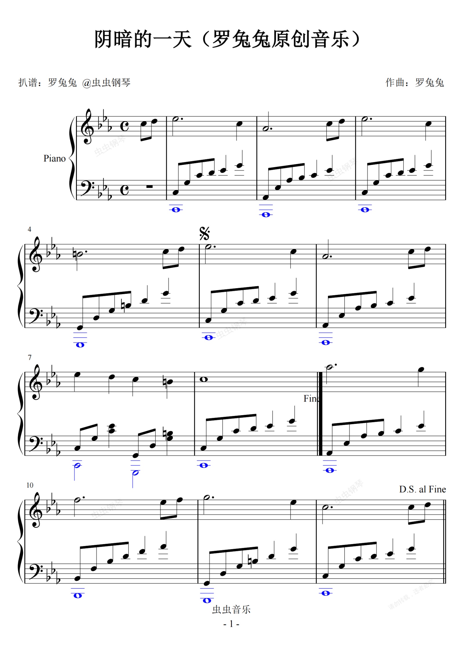 钢琴谱:阴暗的一天(罗兔兔原创音乐)