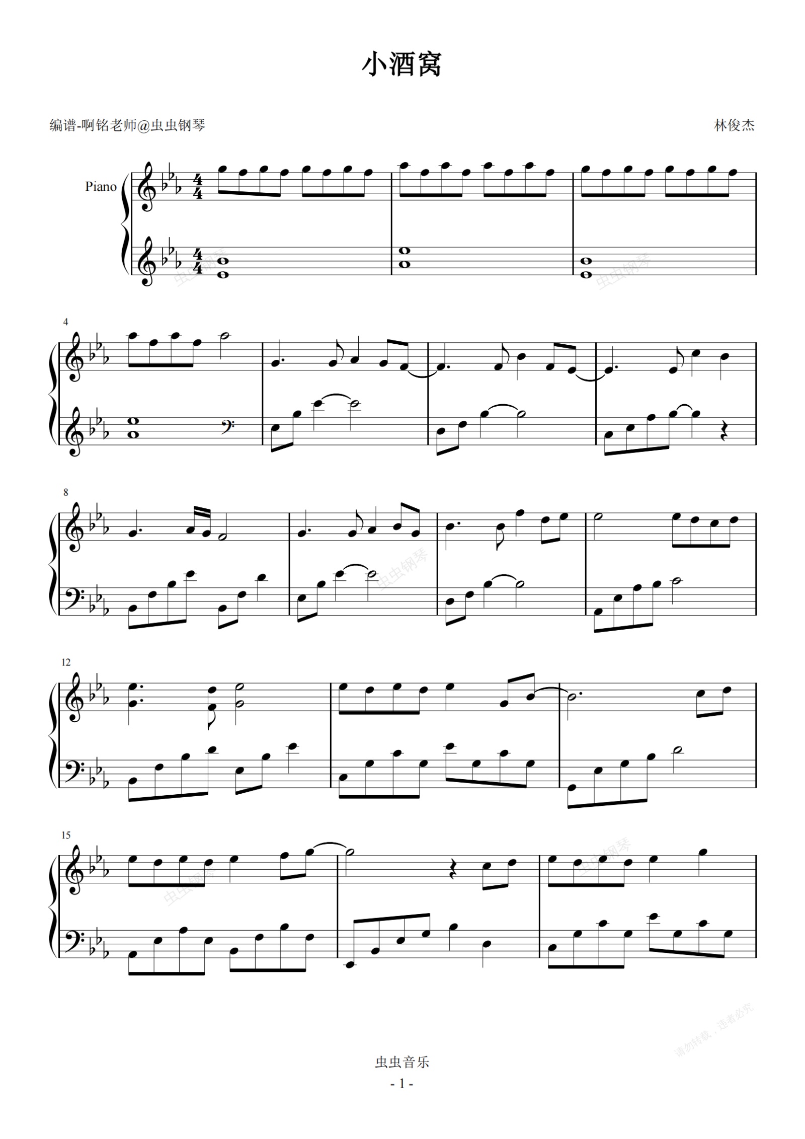 钢琴谱:小酒窝 【原调 简易】