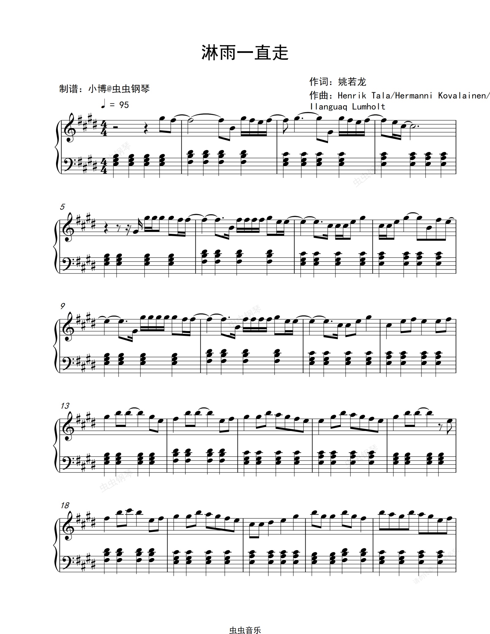 钢琴谱:淋雨一直走-简单版-张韶涵
