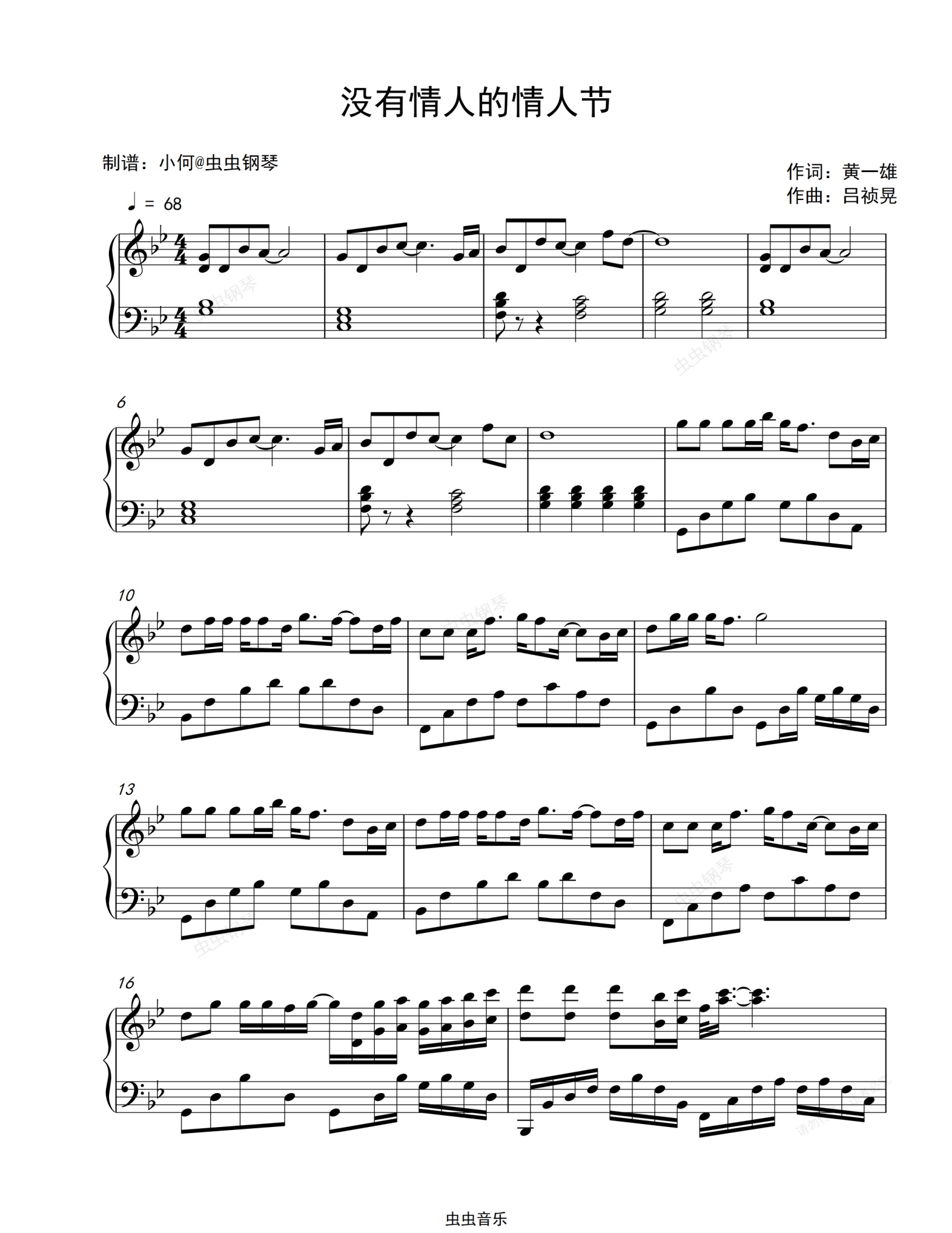 钢琴谱:没有情人的情人节-完美演奏版-孟庭苇