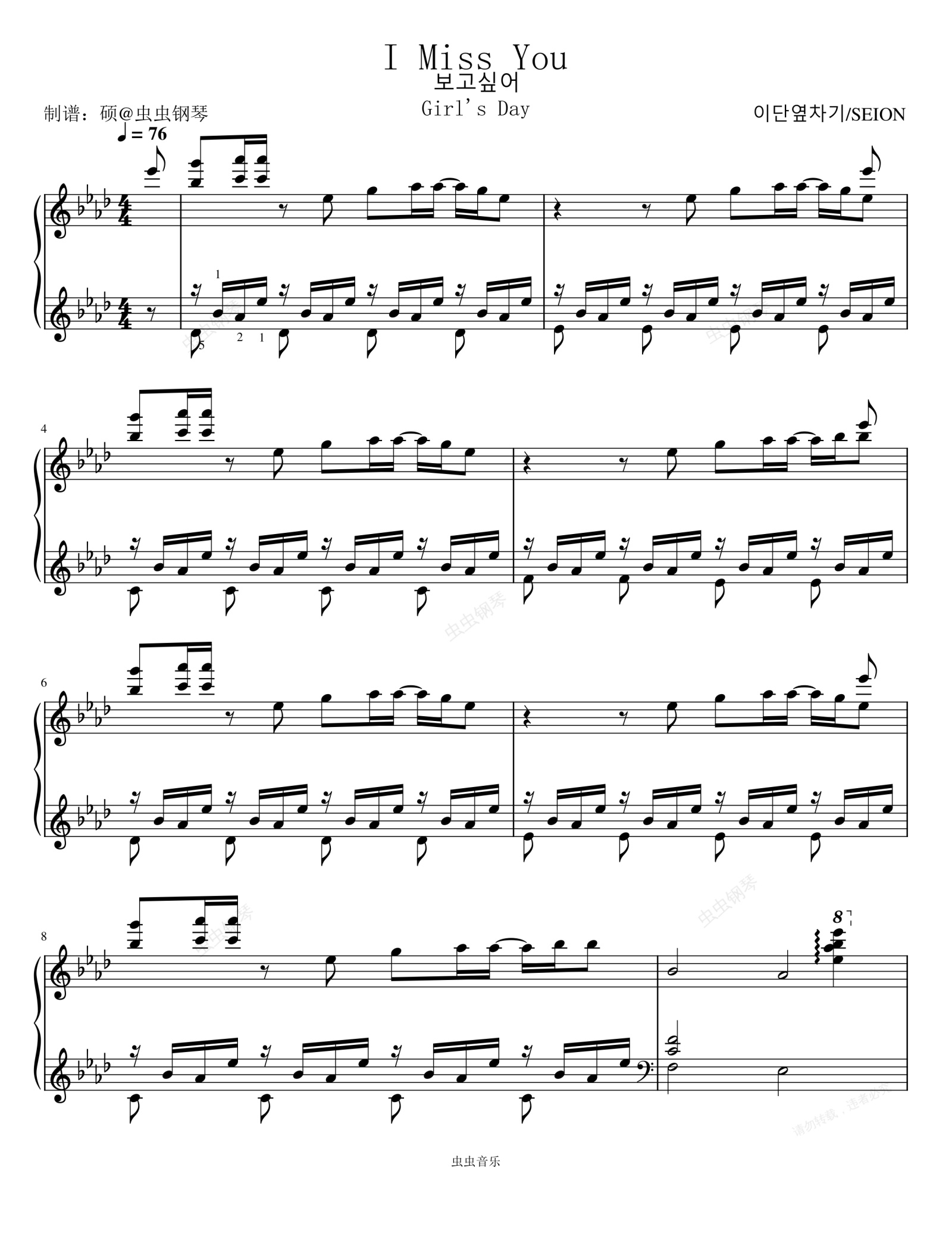 钢琴谱:보고싶어 (我想你) -Girl's Day (걸스데이)