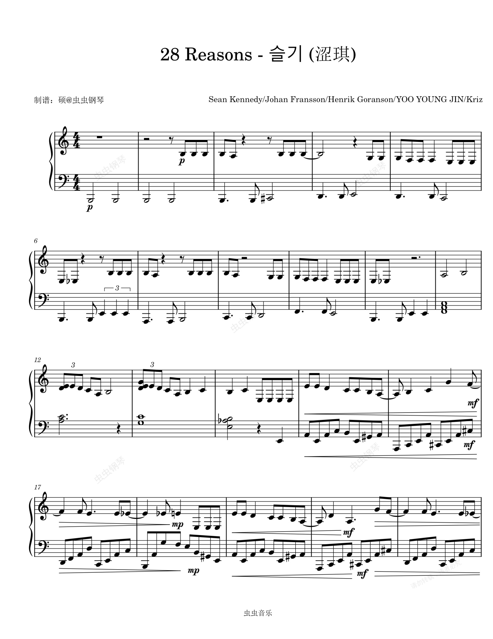钢琴谱:28 Reasons - 슬기 (涩琪)
