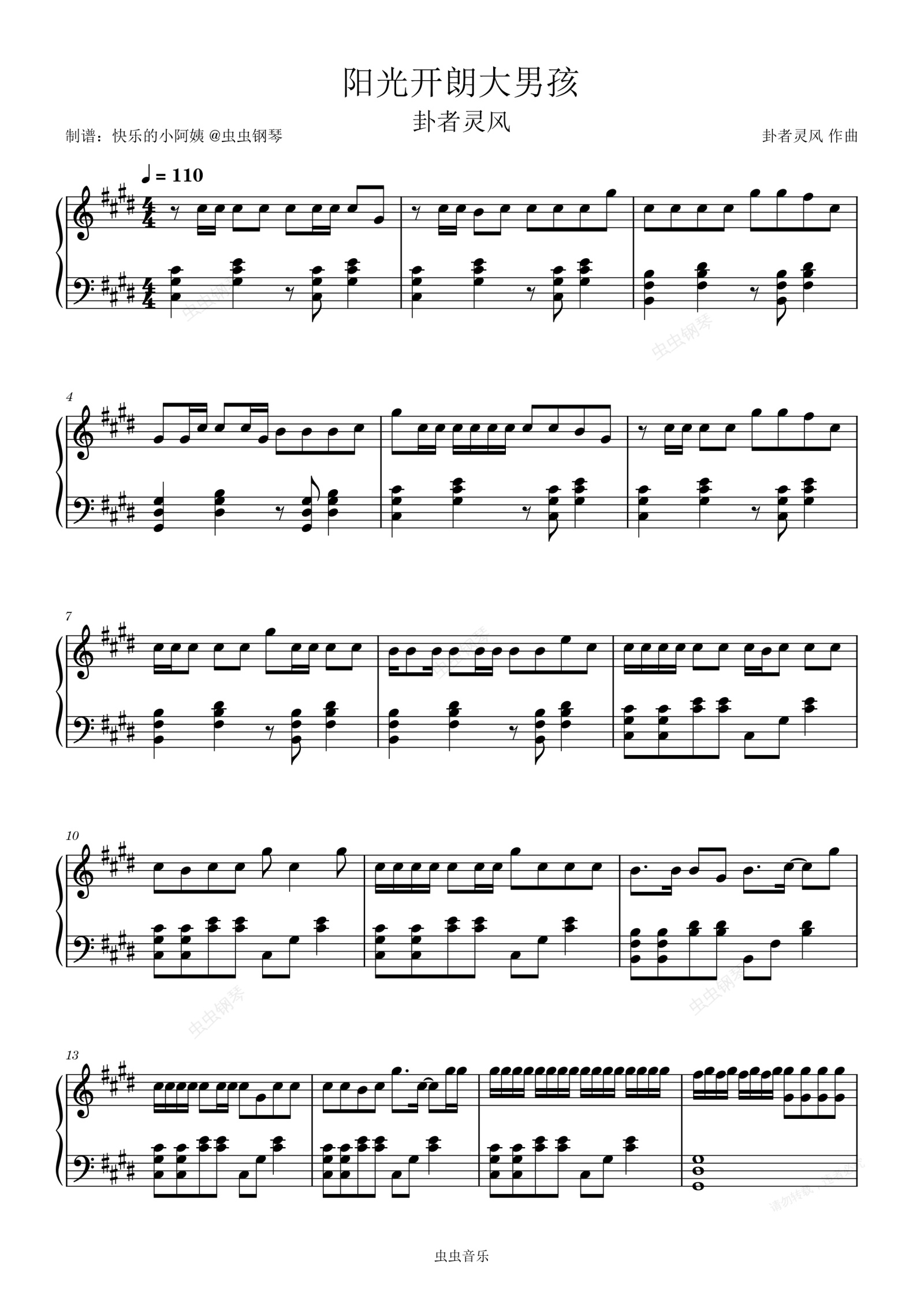 钢琴谱:阳光开朗大男孩-卦者灵风