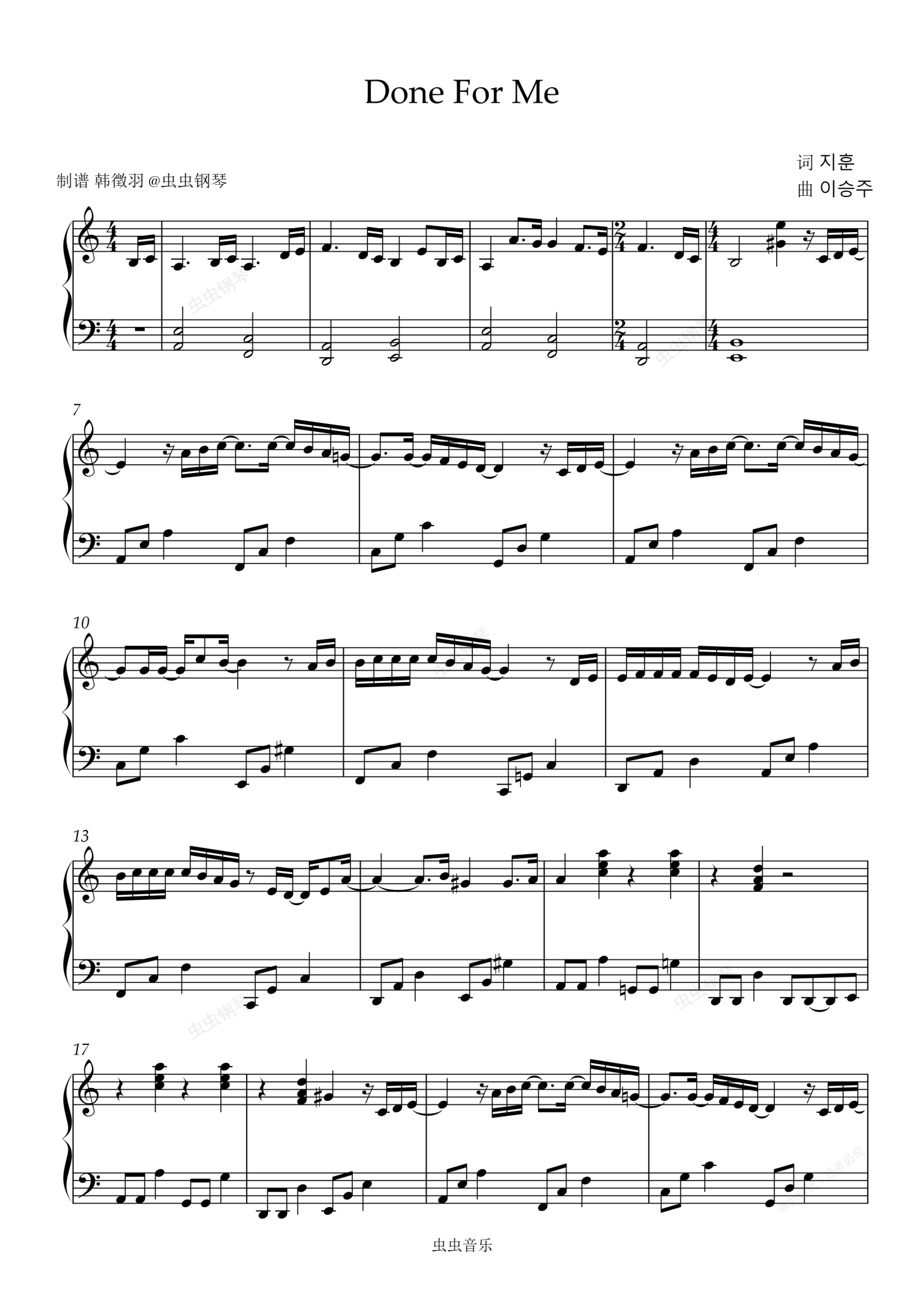 钢琴谱:Done For Me 德鲁纳酒店 简单易弹版