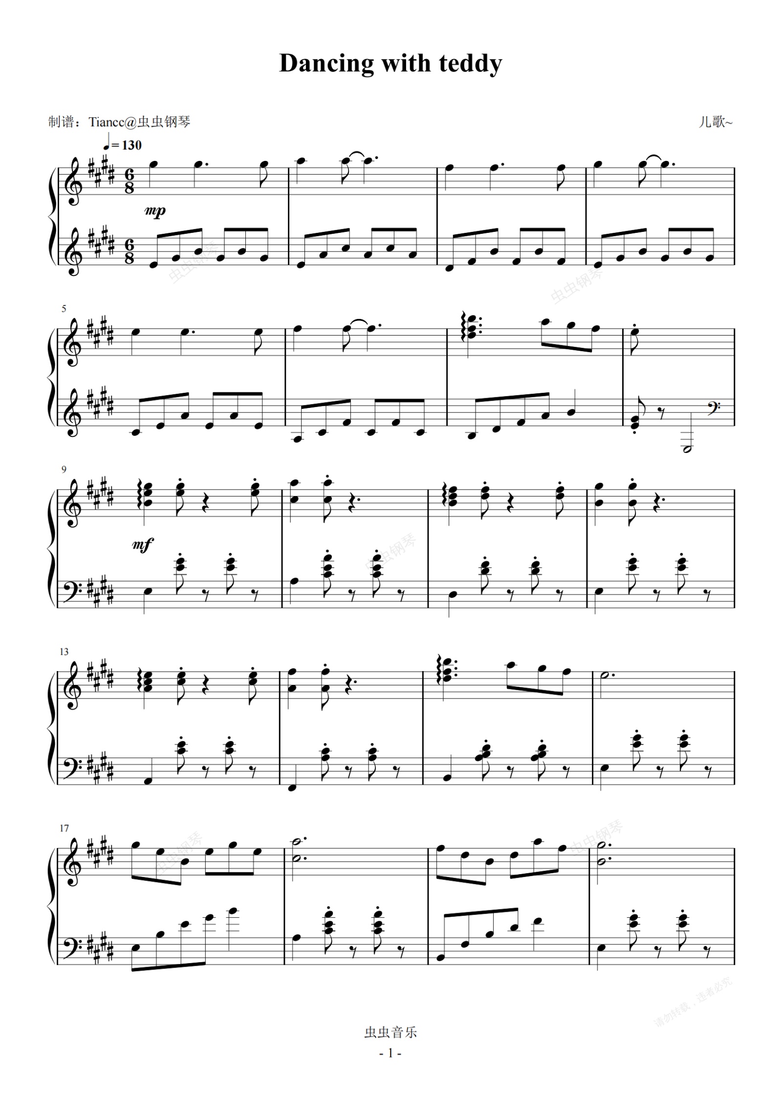 钢琴谱:《Dancing with teddy》很好听欢快的曲子,来听一下啦~