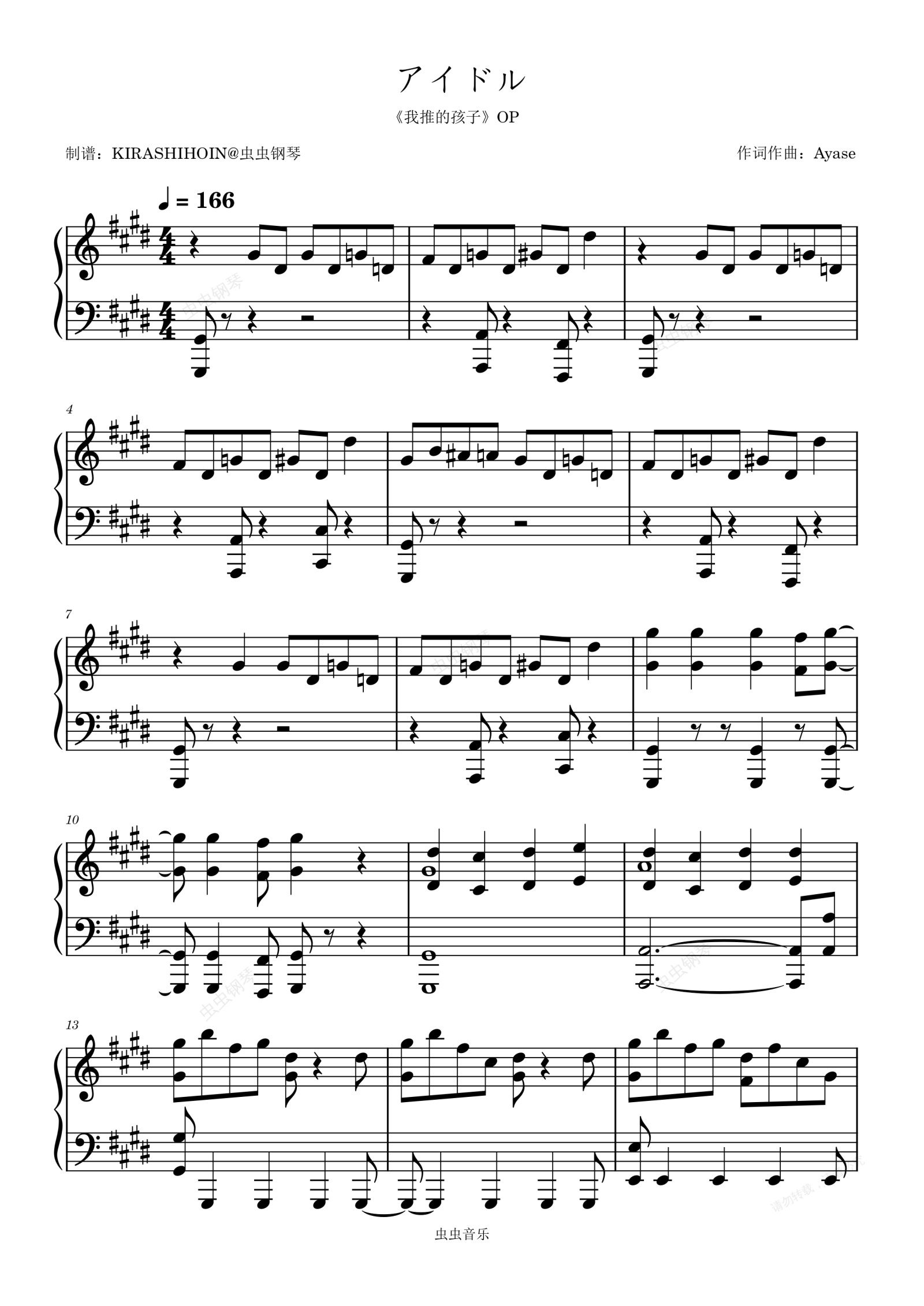 钢琴谱:アイドル(《我推的孩子》主题曲)- YOASOBI