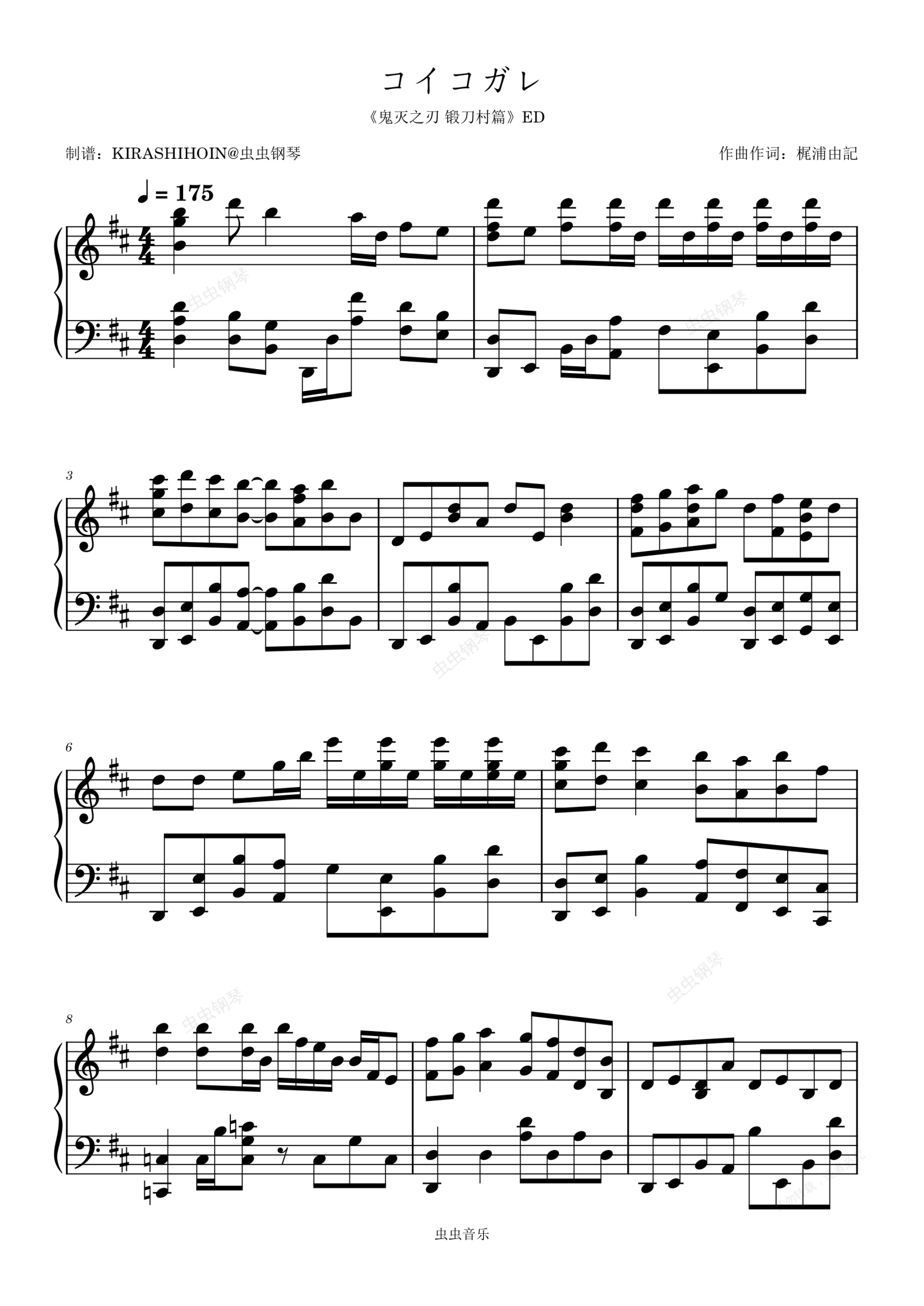 钢琴谱:コイコガレ(《鬼灭之刃 锻刀村篇》ED/片尾曲)- milet