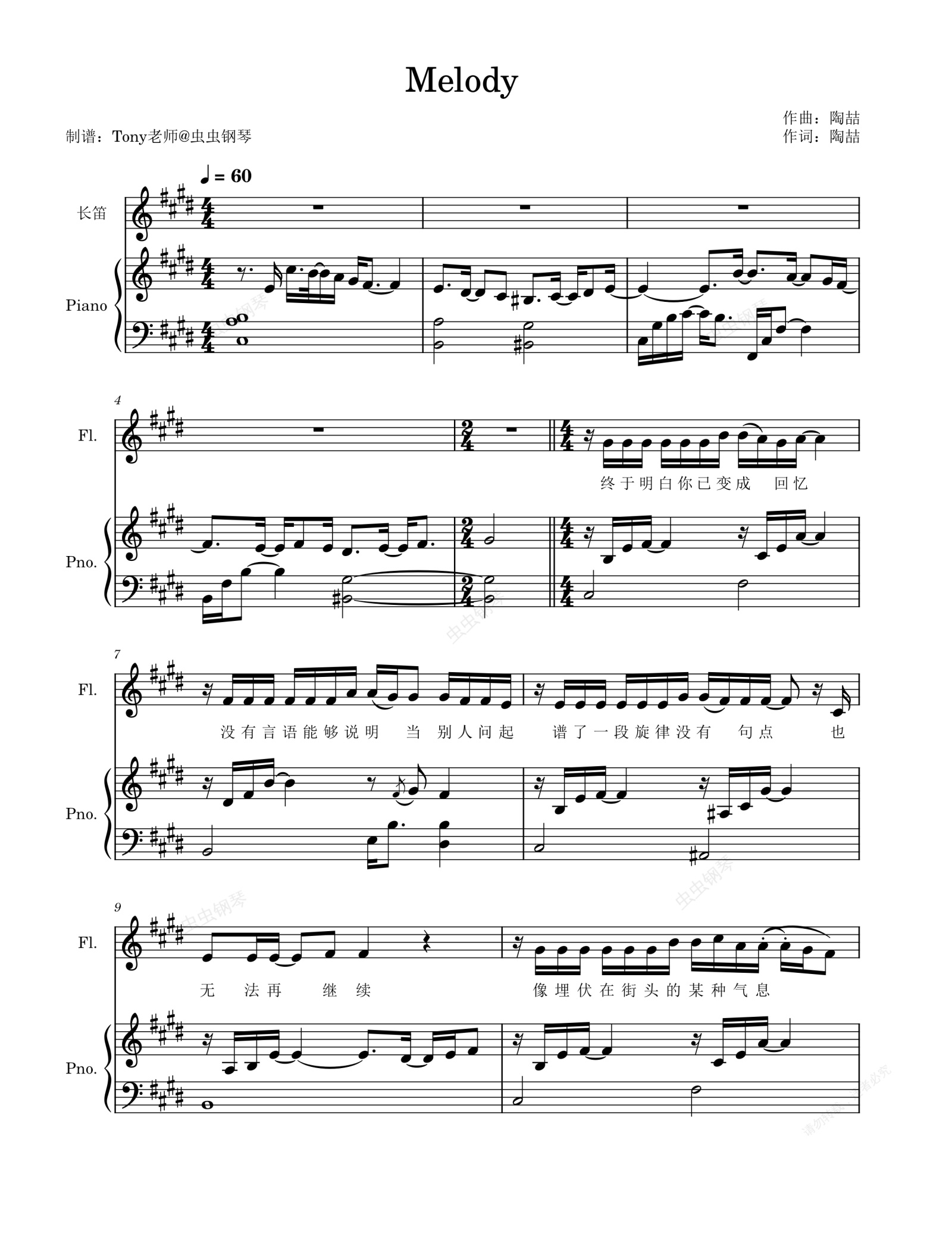 钢琴谱:Melody 【完美伴奏付词】陶喆