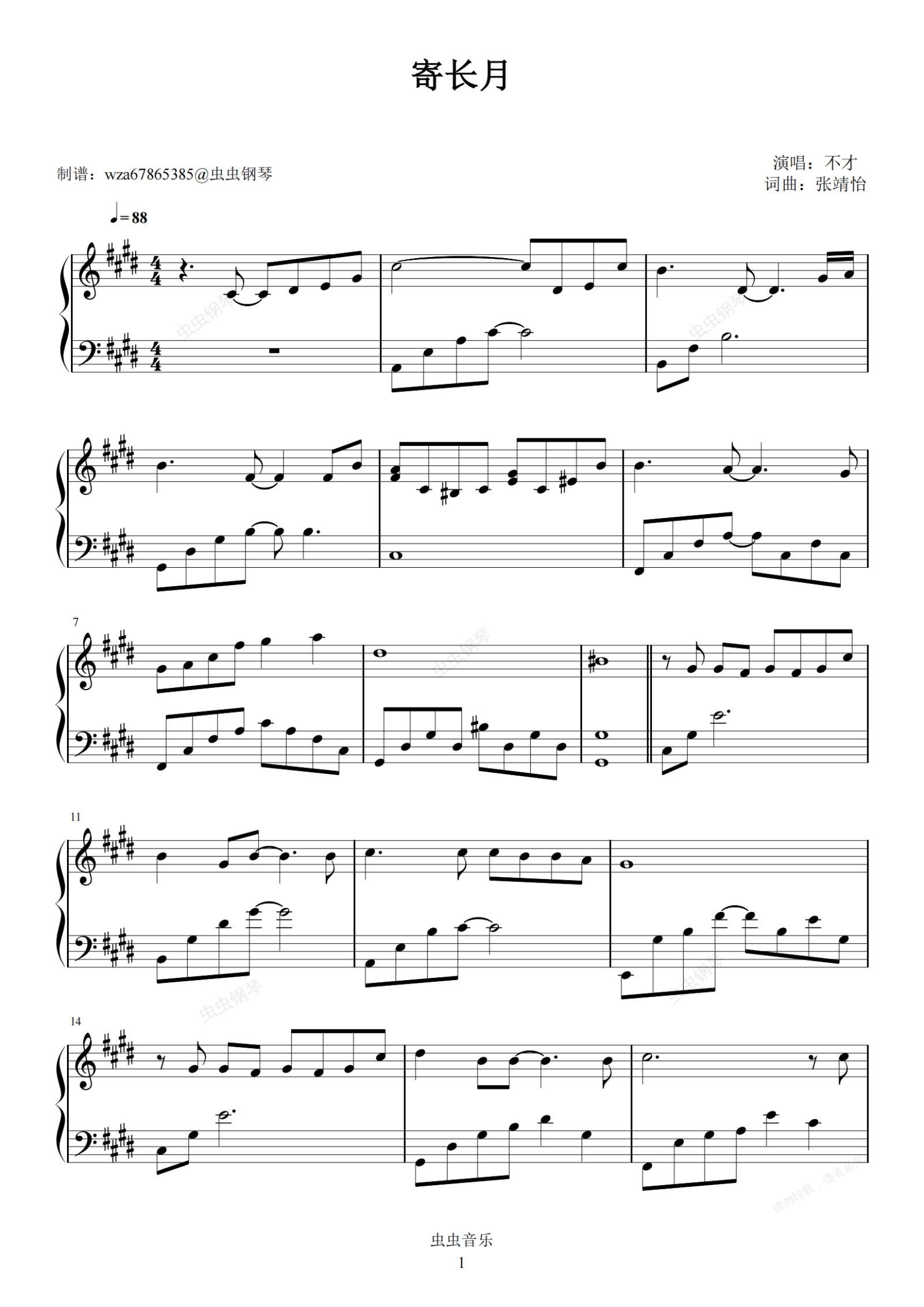 钢琴谱:寄长月