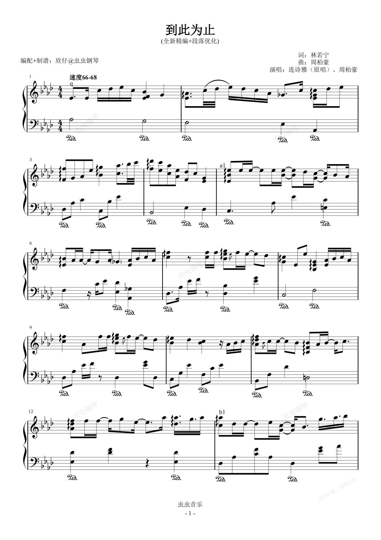 钢琴谱:降A《到此为止》(连诗雅、周柏豪、全新精编+段落优化)