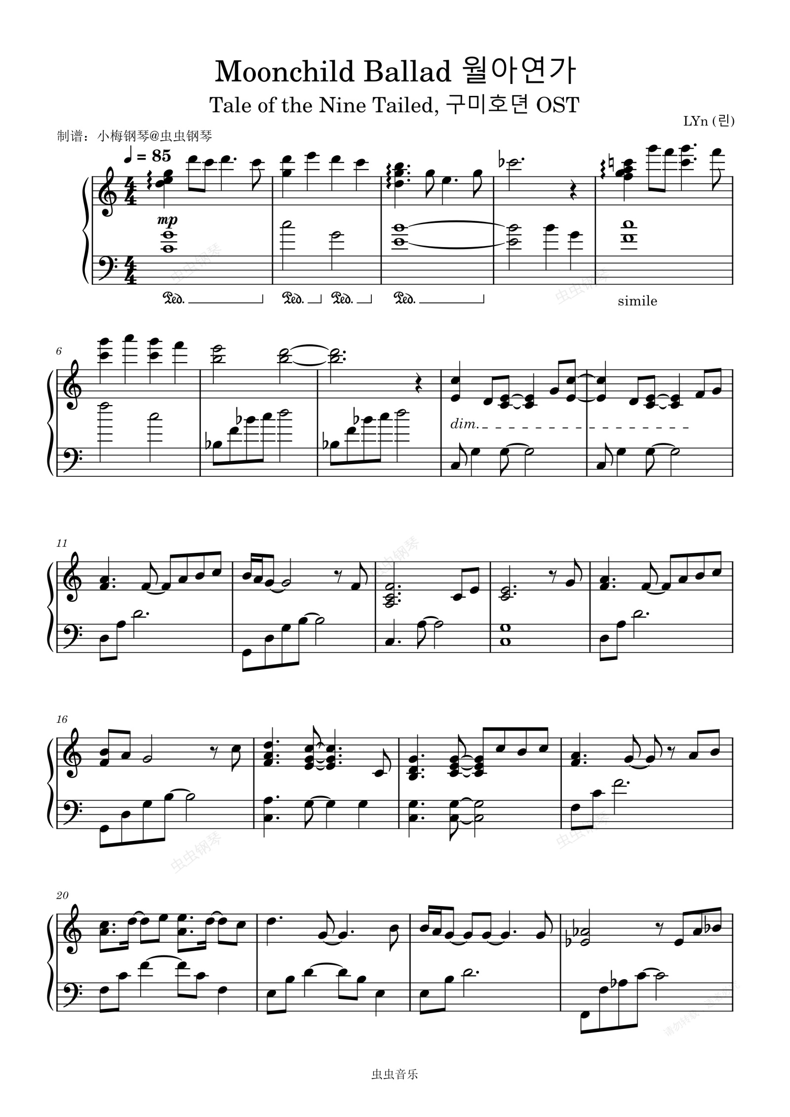 钢琴谱:월아연가 (月兒戀歌)Moonchild Ballad - LYn