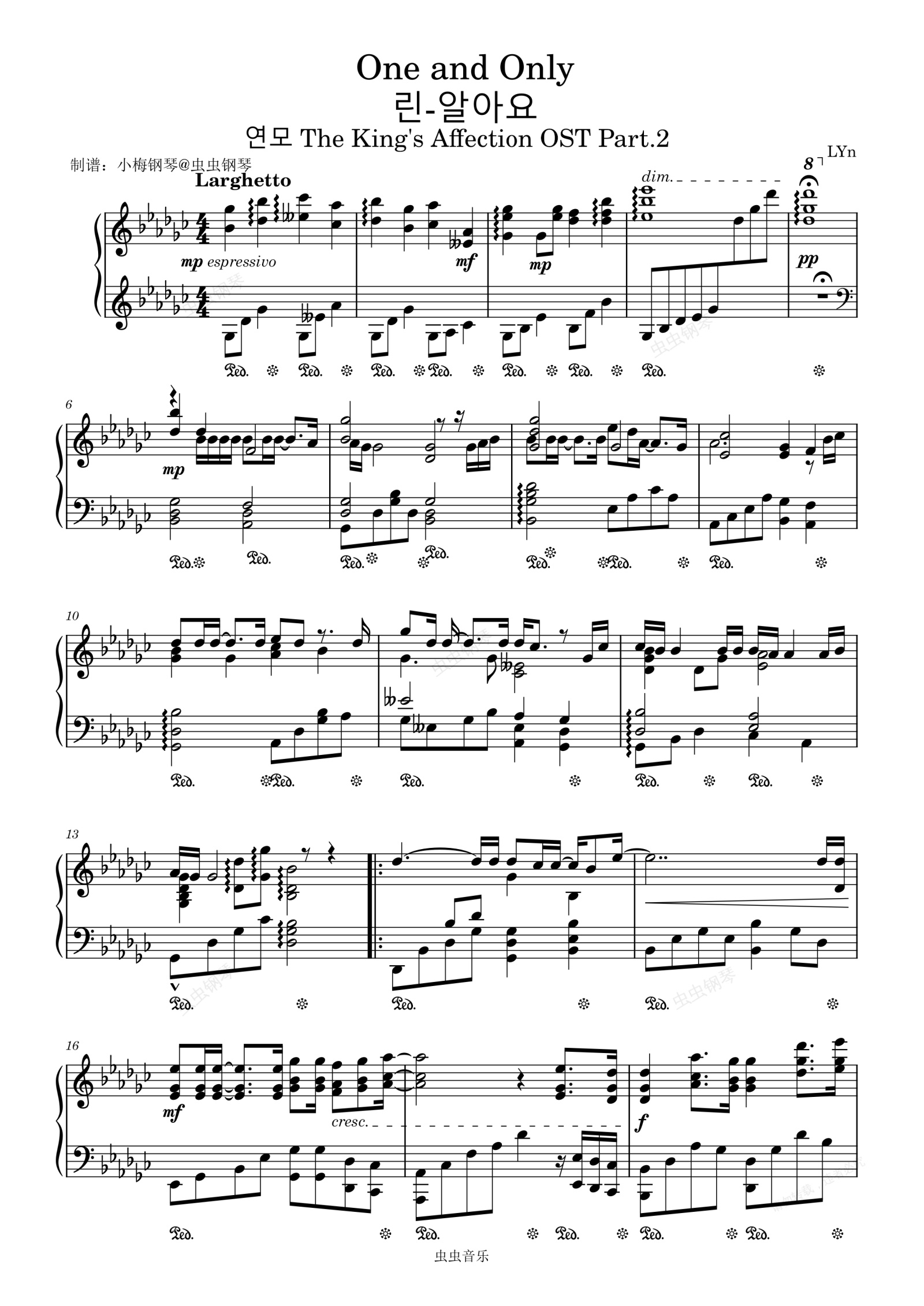 钢琴谱:One and Only - LYn