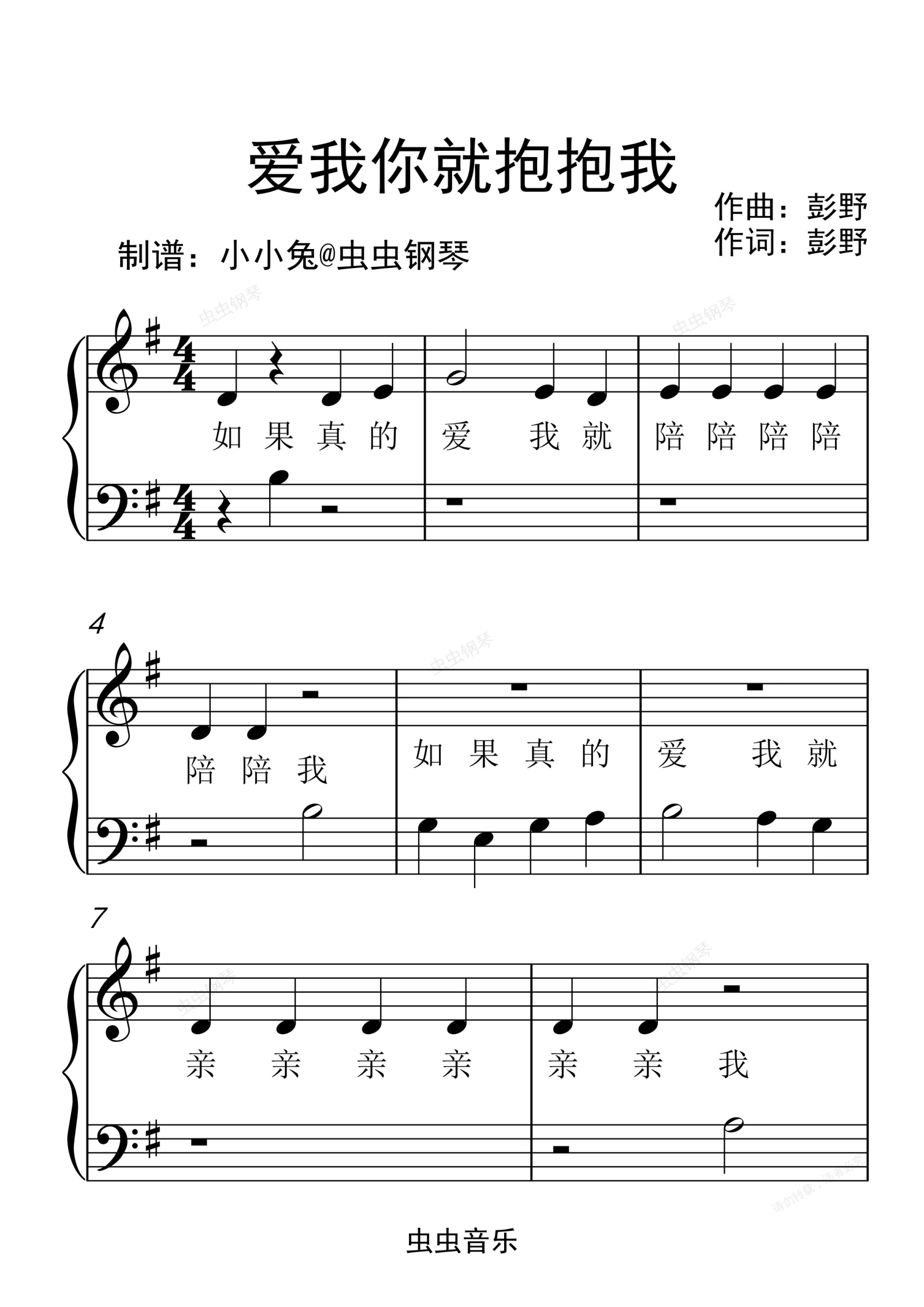 钢琴谱:爱我你就抱抱我 小汤1-2