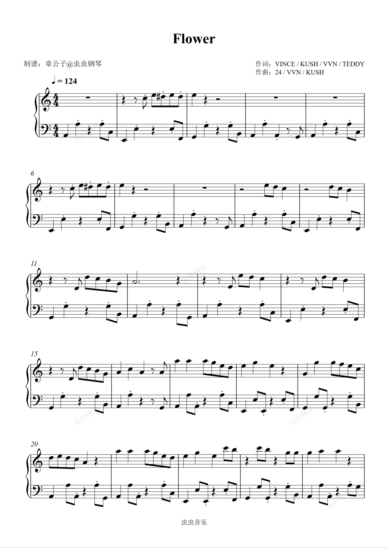 钢琴谱:꽃 FLOWER - JISOO 金智秀 简易