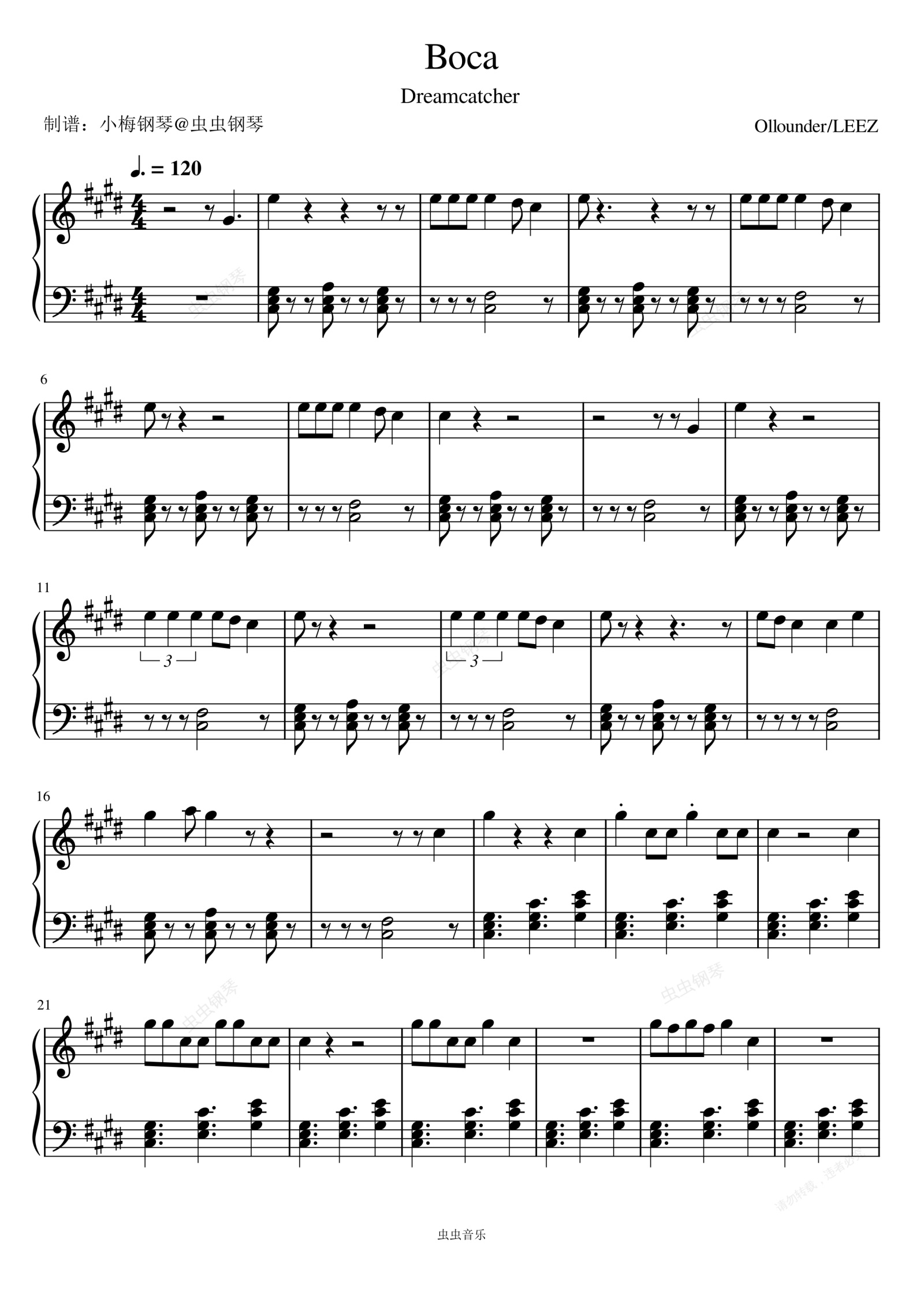 钢琴谱:BOCA - Dreamcatcher (드림캐쳐)