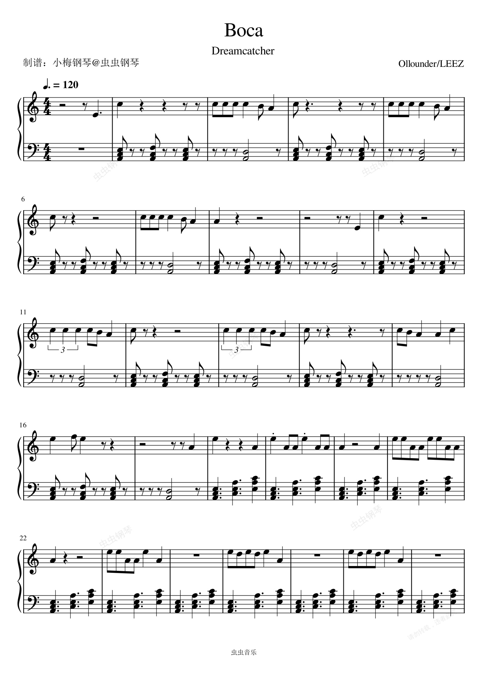 钢琴谱:BOCA - Dreamcatcher (드림캐쳐)