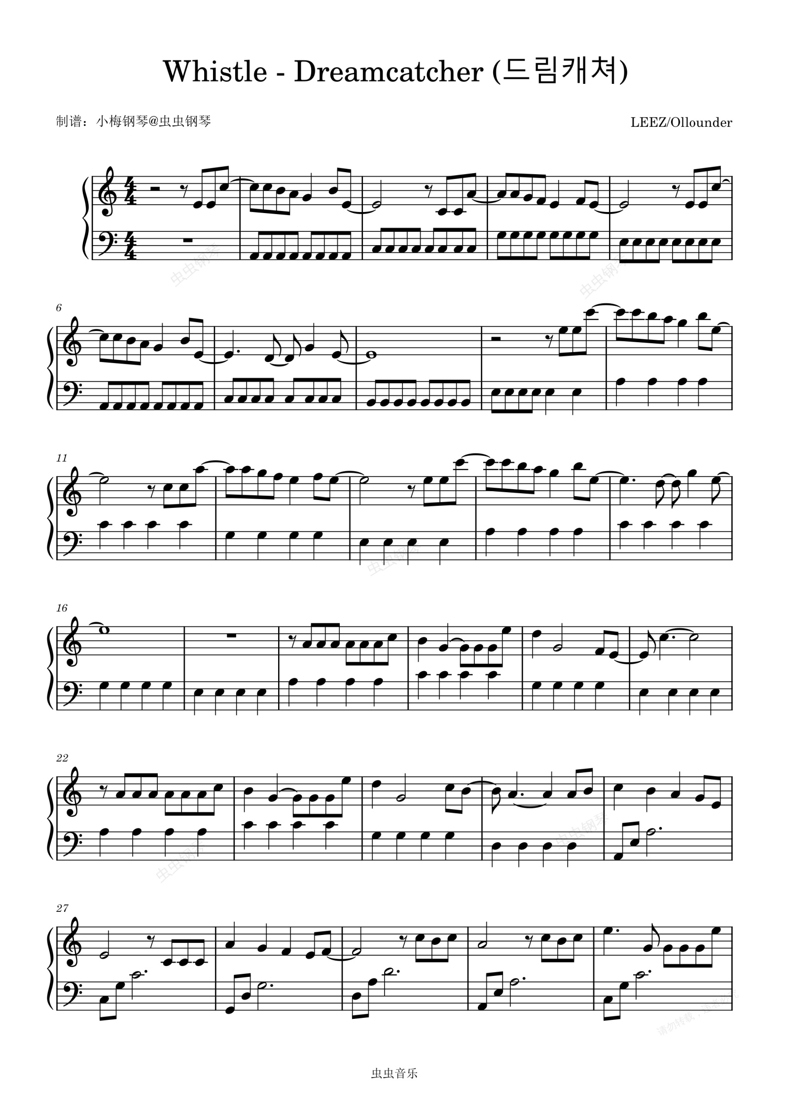 钢琴谱:Whistle - Dreamcatcher (드림캐쳐)