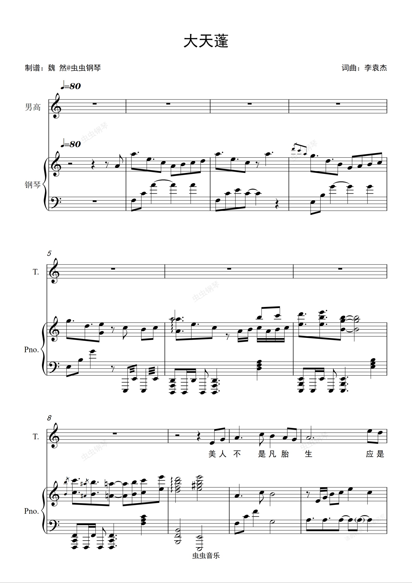 钢琴谱:大天蓬(超还原伴奏谱)——『忧伤歌声』