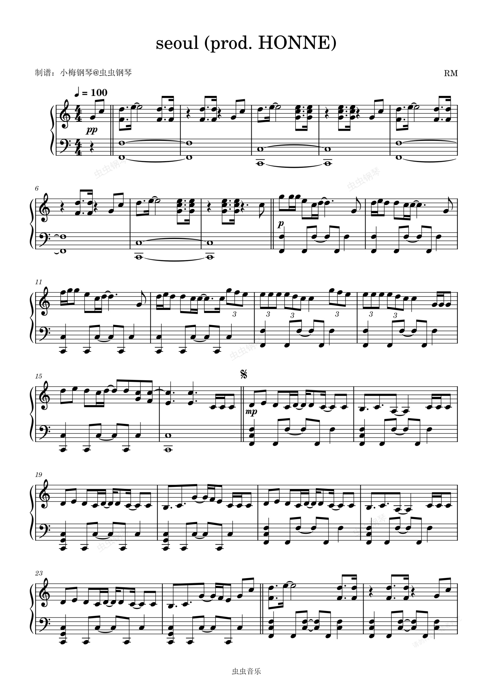 钢琴谱:seoul (prod. HONNE) (prod. HONNE) - RM