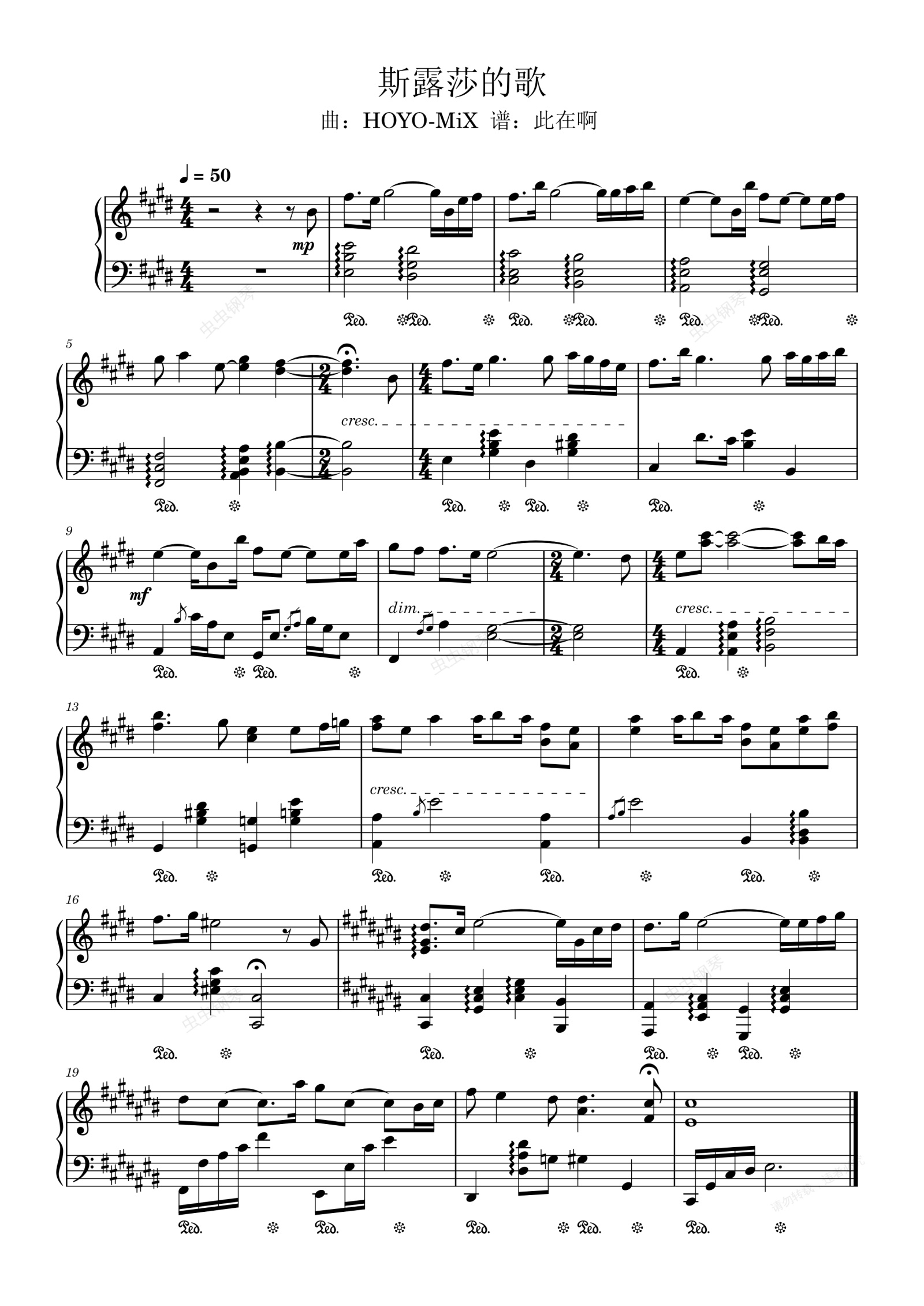 钢琴谱:斯露莎的歌(《原神》第二张须弥篇OST「啁哳流变之砂 The Unfathomable Sand Dunes」)